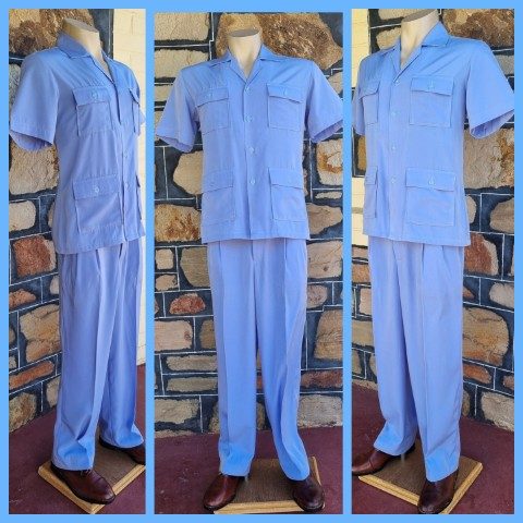 This suit is a very good copy of original Safari Suits, except that the pants are more of an 1980’s cut, rather than 1960’s flat front, or 1970’s flared ones. It still looks great though!