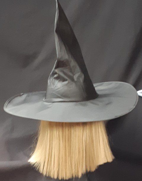 The wig is new by ‘Glitz’ wigs. The witches hat was used for display purposes only, so was never worn.