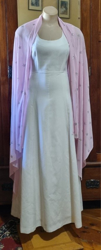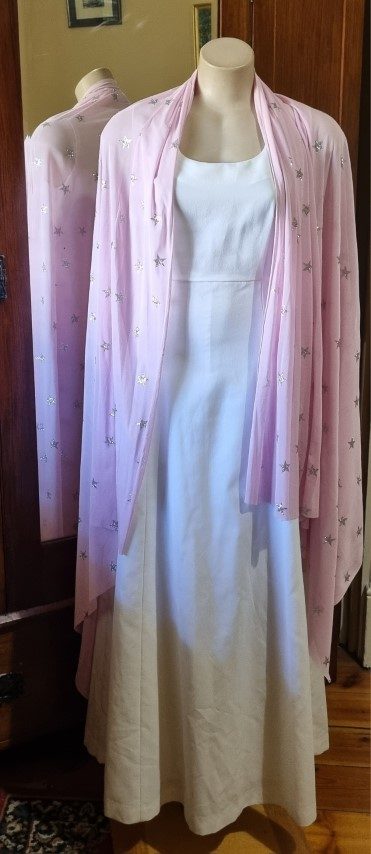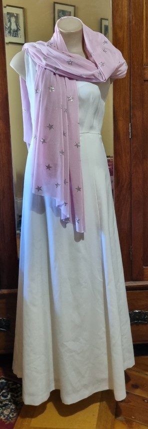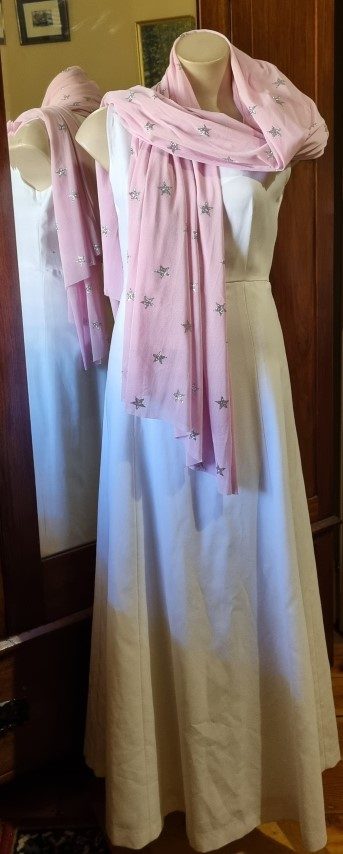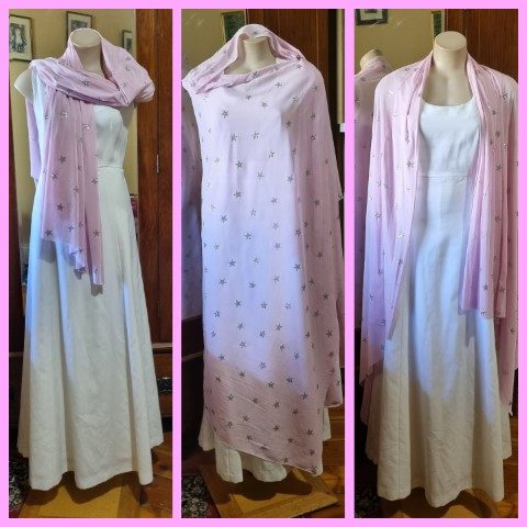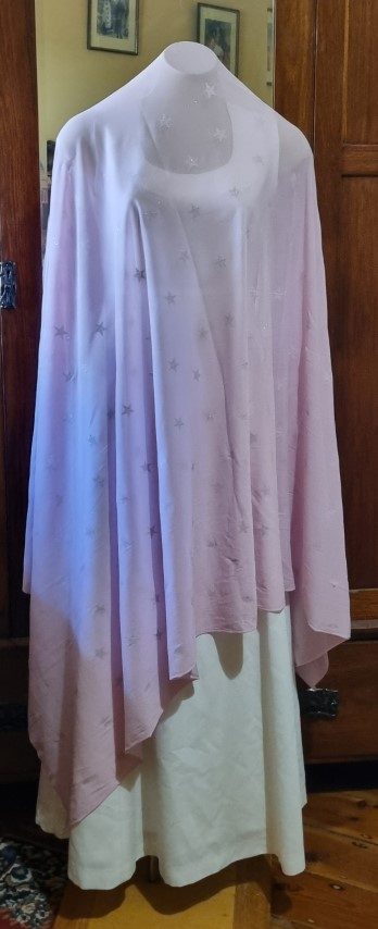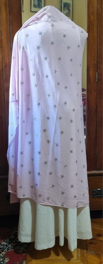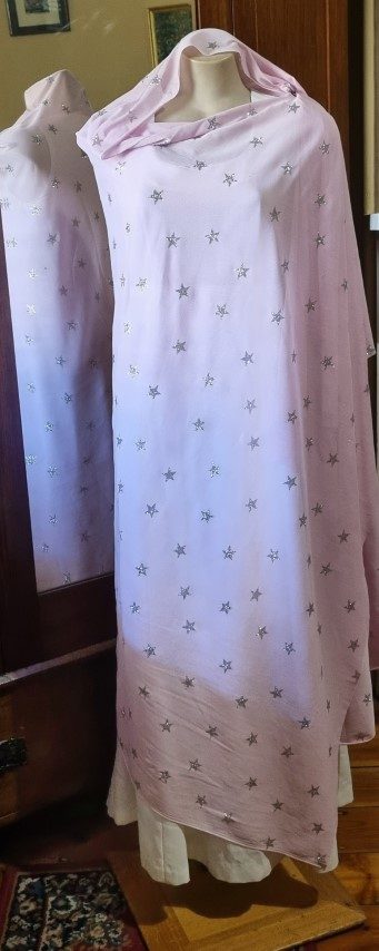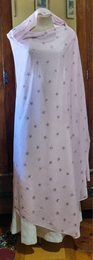Sari/Shawl, pink with silver stars, polyester/nylon.