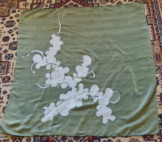 Scarf/pashmina, Silk, Sage/grey, 88cm x 91cm