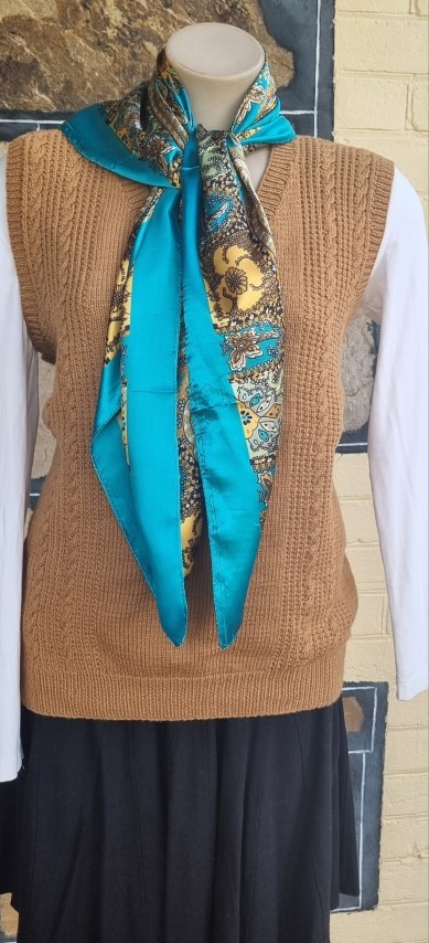 I adore this scarf, and so many different ways to wear her, even as a small table cloth.