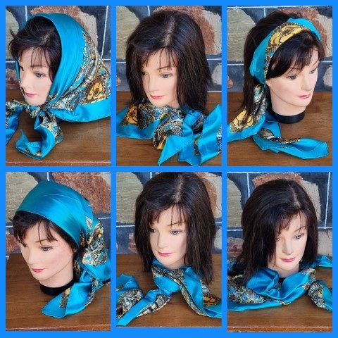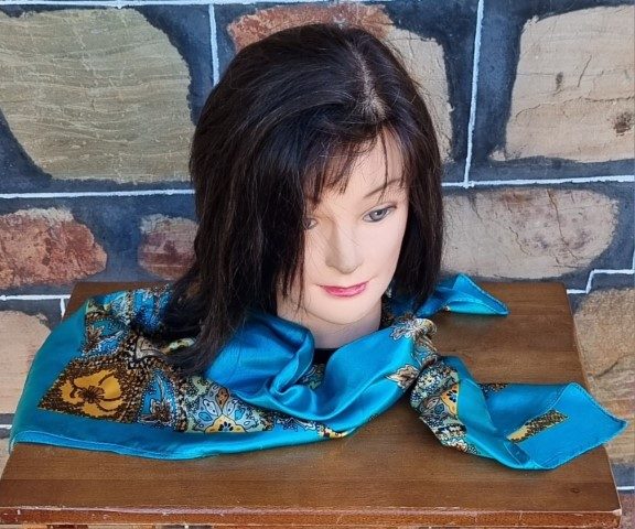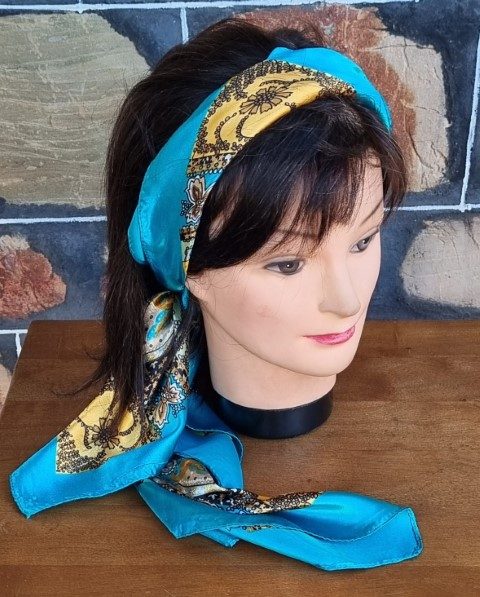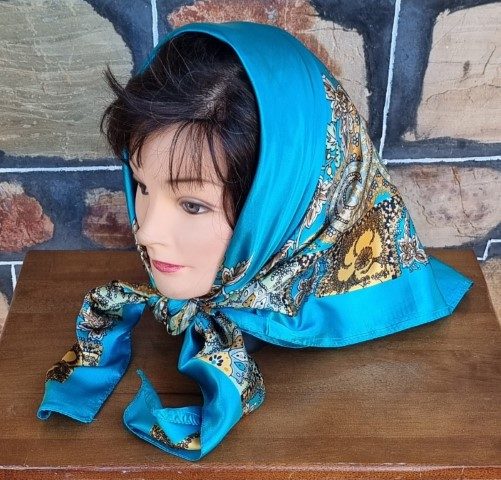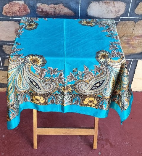 Silk Scarf, blue Paisley print, by ‘Mosi’, 89cm X 92cm