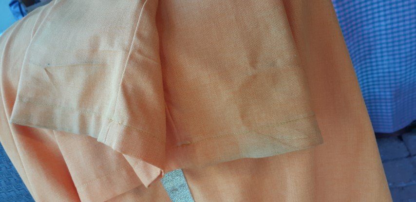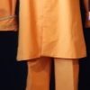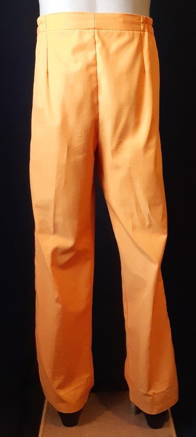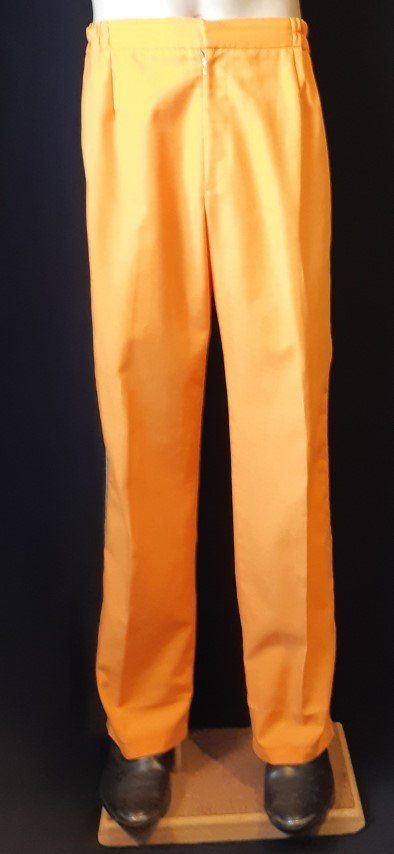 The pants have an elastic waist and measure 30-32″, the length is 42″. There is some wear at the hems, but when the suit is on, it is barely noticeable, but we have reduced the price because of it.