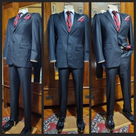 Made by Costume designer, ex-hire suit.