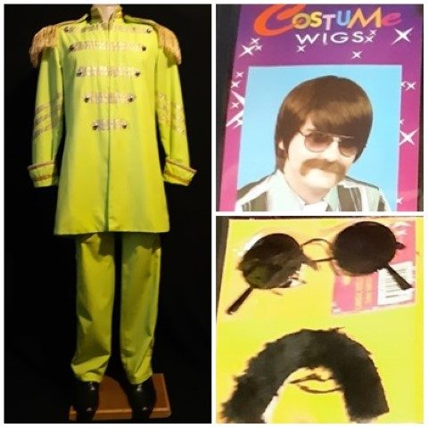 ‘St.Peppers, John Lennon inspired suit’, poly/cotton, with wig, sunnies and mustache.