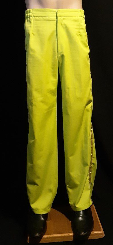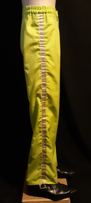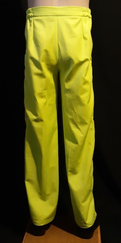 The pants have an elastic waist and measure 29-31″, the length is 41″.