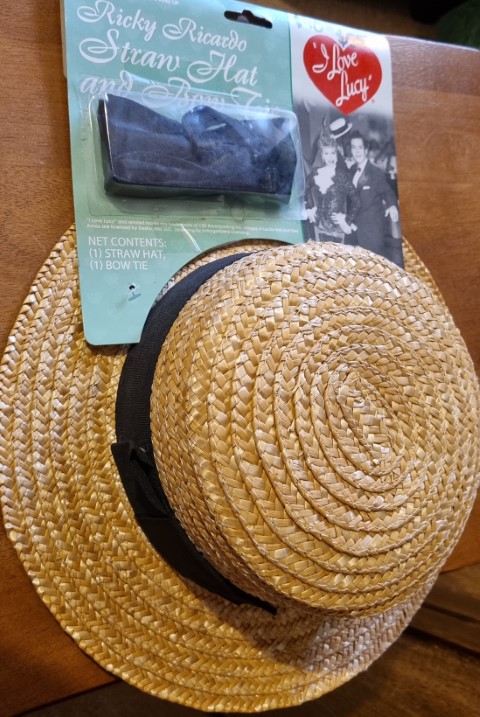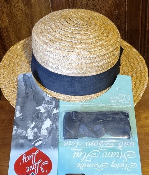 Straw Boater hat and Black Bow tie, ‘The Ricky Ricardo’, by ‘Sweidas’, one size