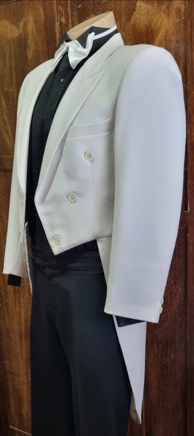 Tails Coat, White, polyester, by ‘Travelers of Australia’, size S-M (4 Reg)