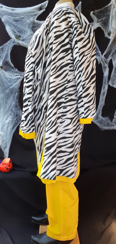 This costume includes Jacket, pants, tie, pocket square, hat with band and mask. It is an ex-hire outfit, only hired a few times. It has been freshly laundered and is in excellent condition.