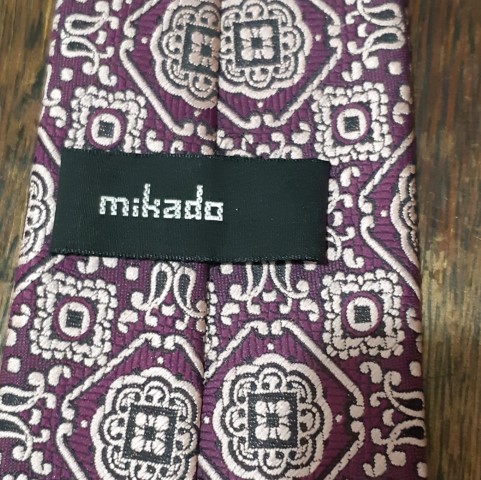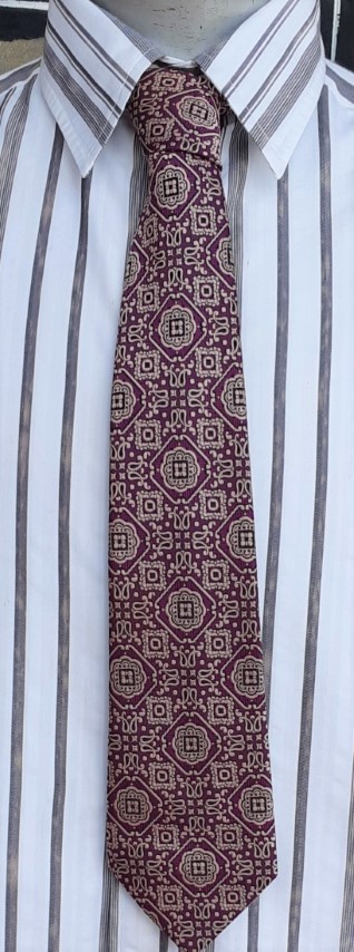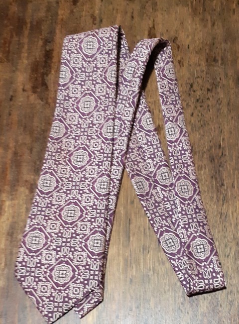 Tie, 1960’s, purple/lavender print, polyester, by ‘Mikado’