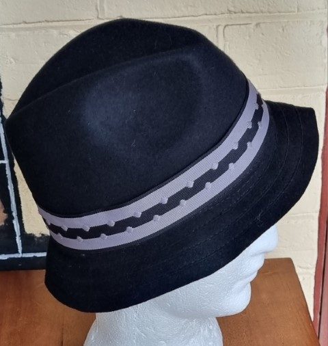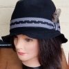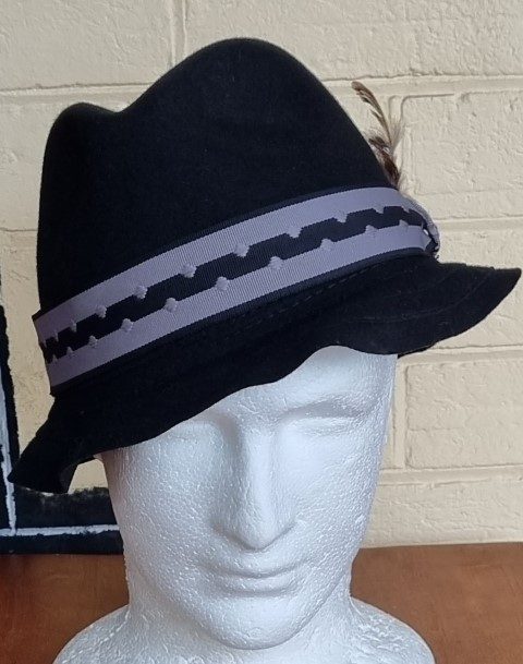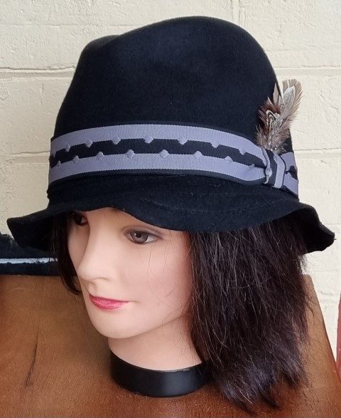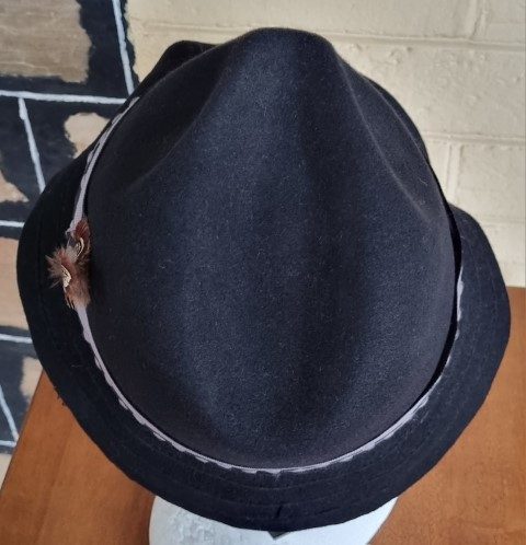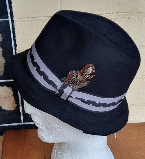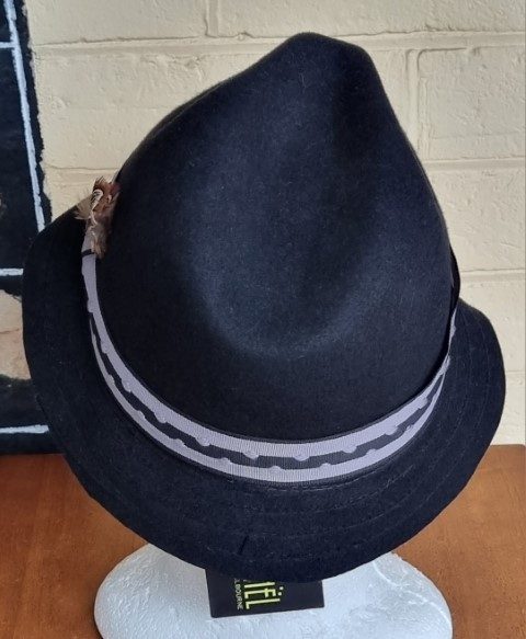 Trilby Hat, Wool, feather trim, by ‘Avenel’, Black, new