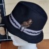 This trilby hat will take you from day to night and on any occasion. Finished with a ribbon band and print lining. The rim is very soft and pliable.