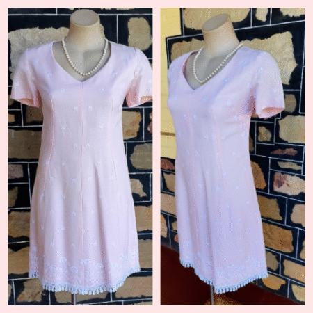 All the measurements are with the tunic open, bust is 98cm, waist is 98cm, hips are 107cm and length is 85cm.
