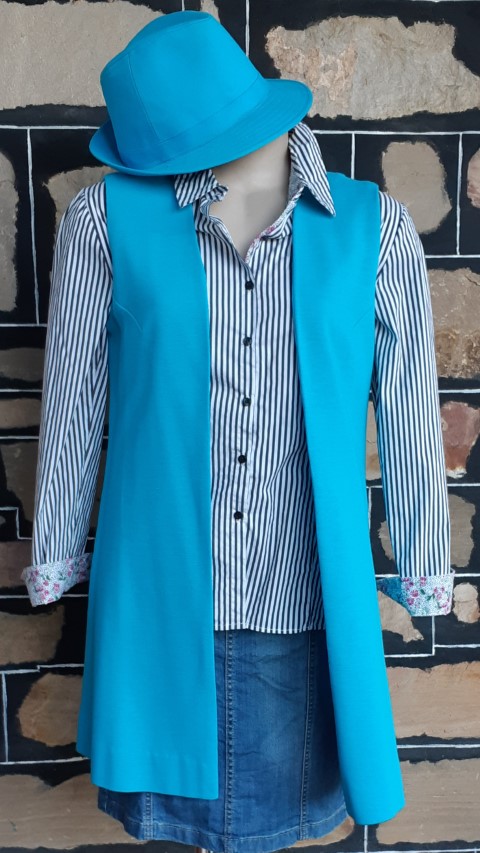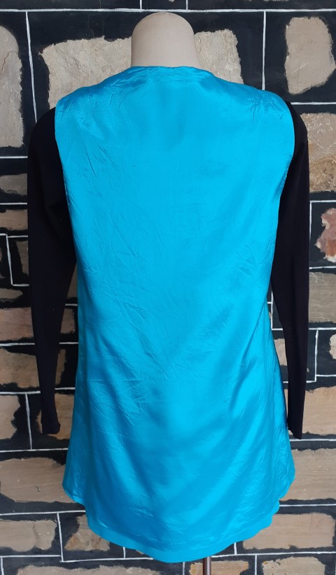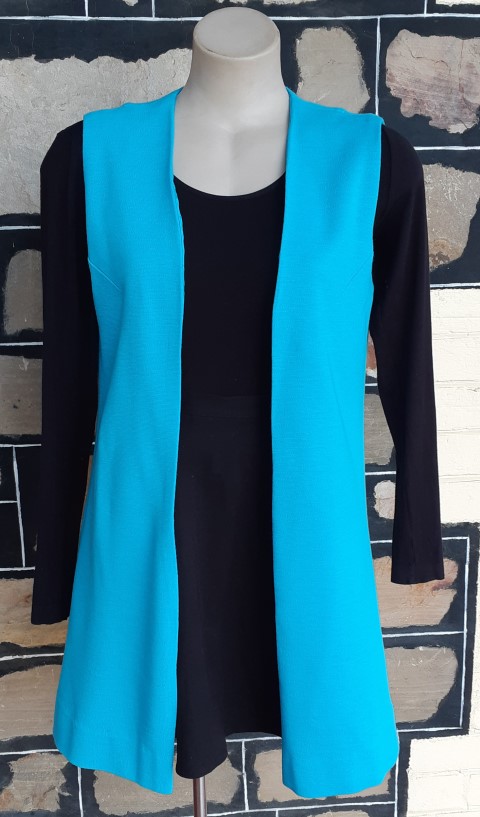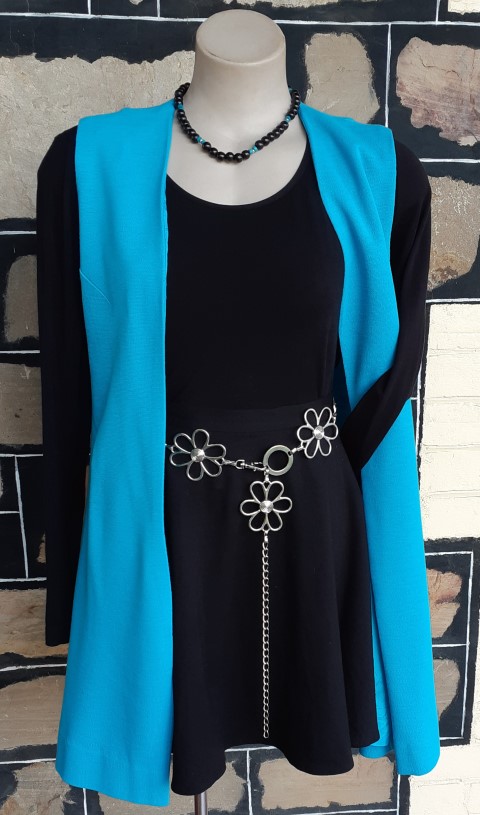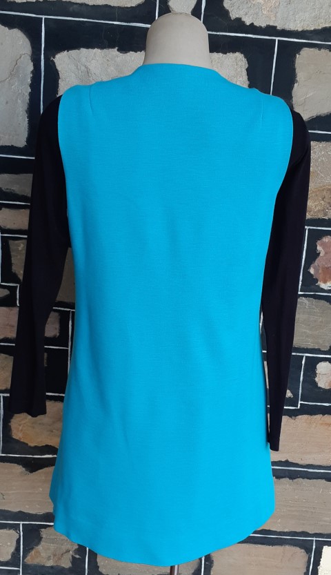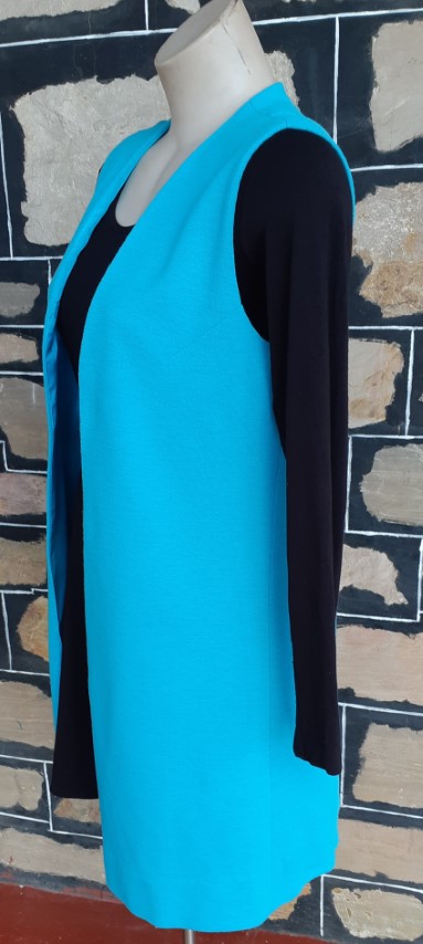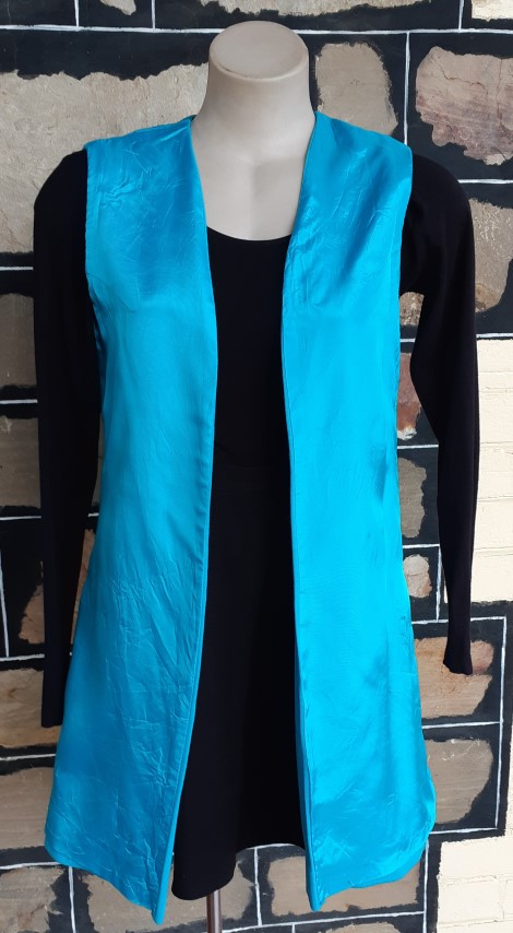 All the measurements are with the tunic open, bust is 98cm, waist is 98cm, hips are 107cm and length is 85cm.