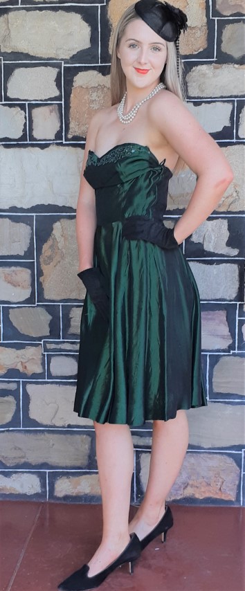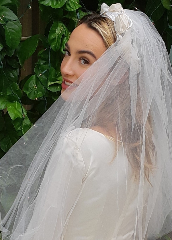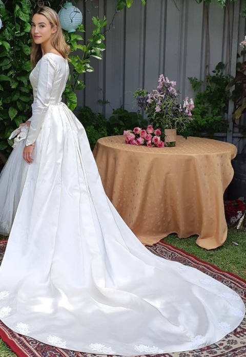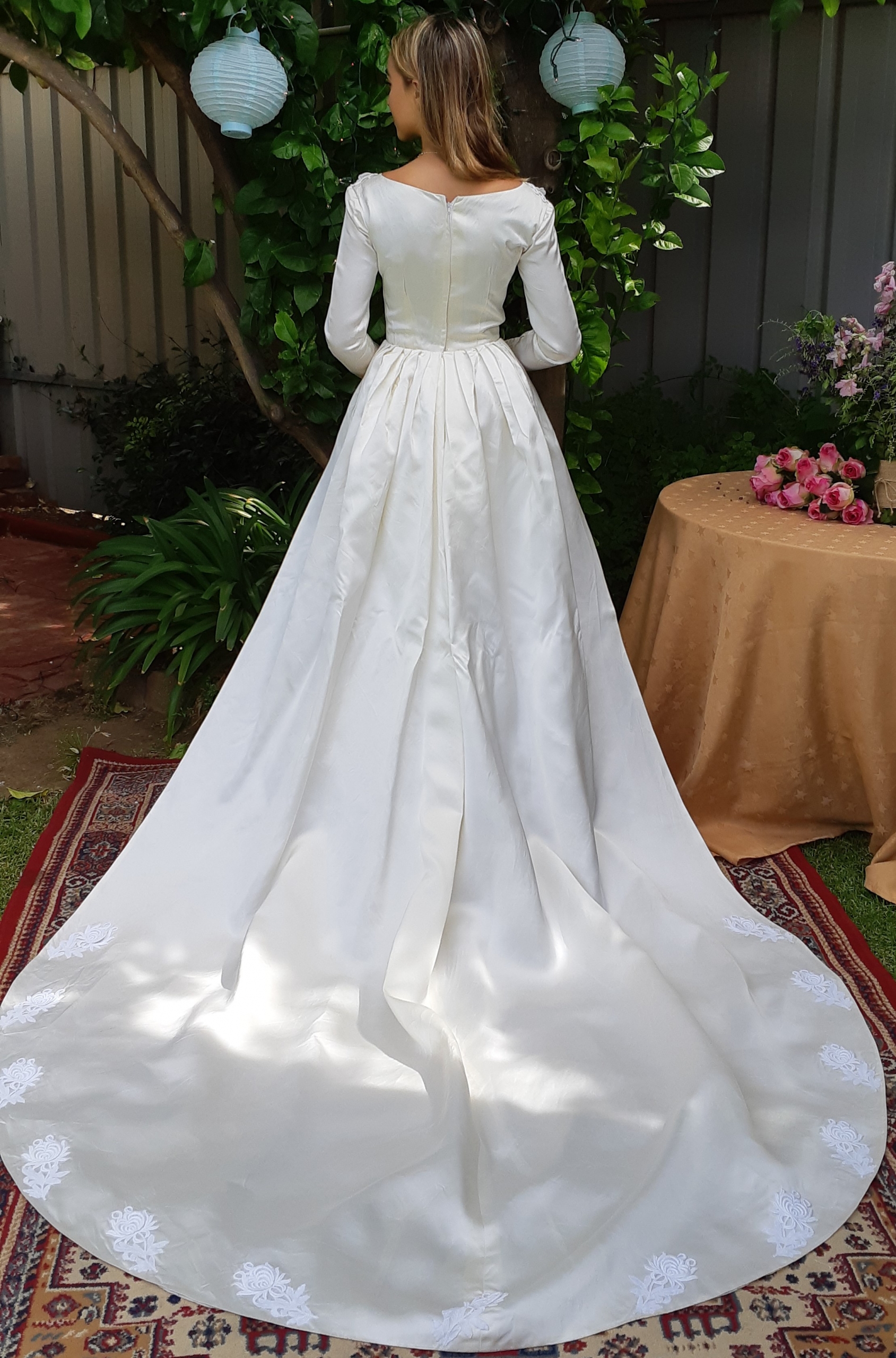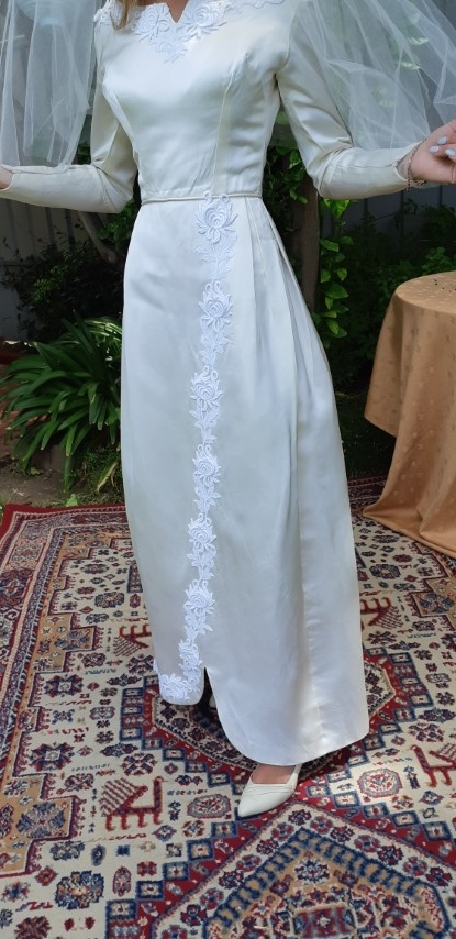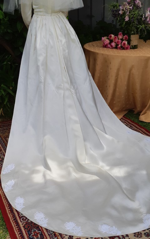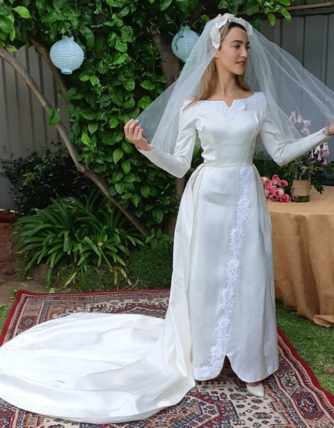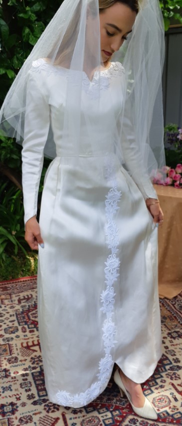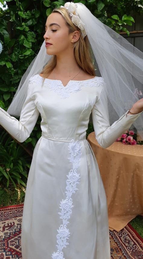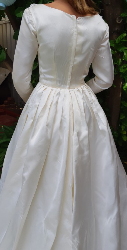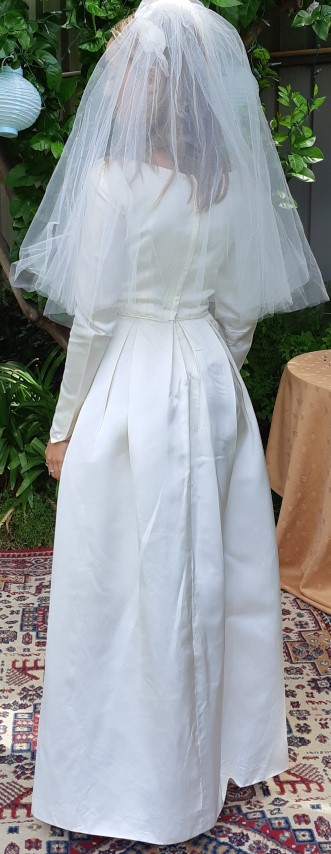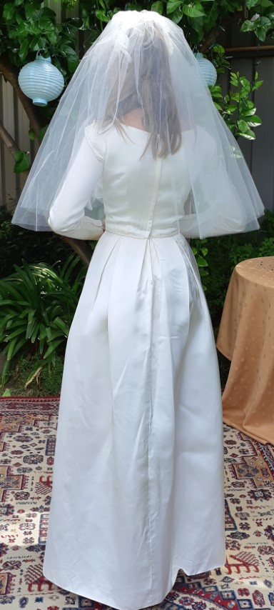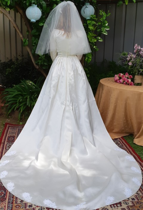 Vintage 1950’s, Satin Wedding Gown with train and veil, champagne colour.