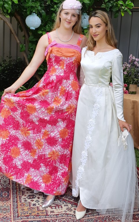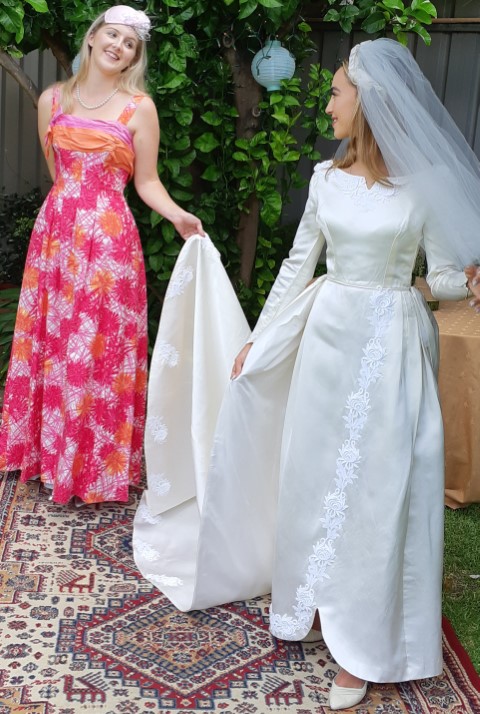 We had fun taking photos of such a breathtakingly beautiful dress, I thought I would show you the ones of bride and bridesmaid with our 50’s cotton gown, enjoy! There are also shots of the gown with and without the train.