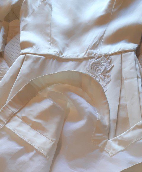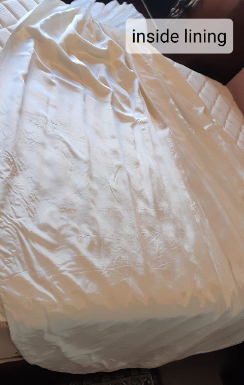 The applique has been strategically placed and is in excellent condition, as is the whole dress and train. It has been hand washed and ironed.
