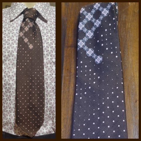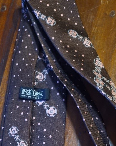 Vintage 1970’s Men’s Tie, Brown and pink print, polyester, by ‘Wash’n’Wear’