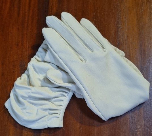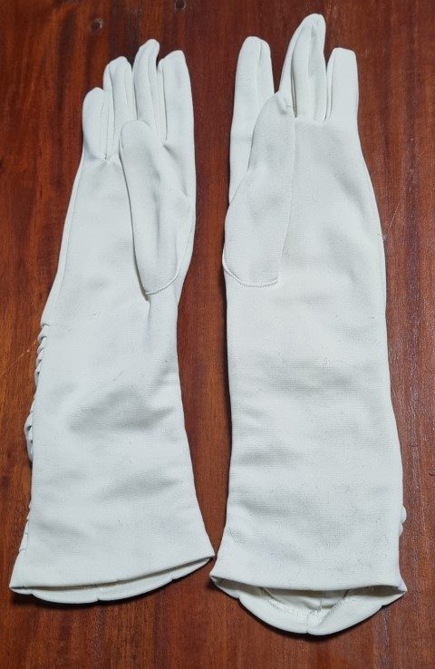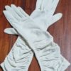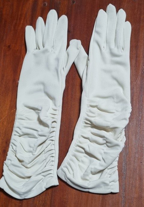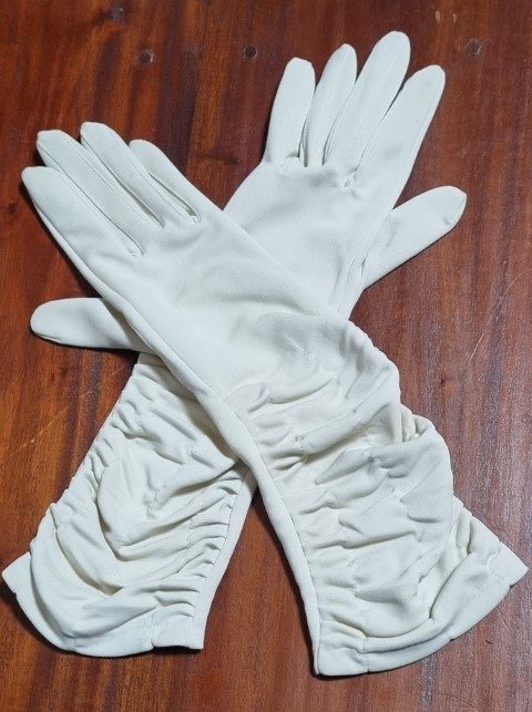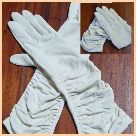 Vintage 3/4 length Gloves with rouching, beige, nylon, size 7