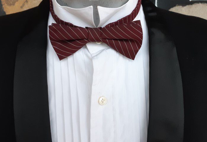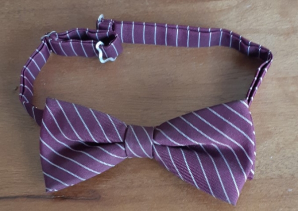 Vintage Bow tie, burgundy stripped, polyester, imported from USA.