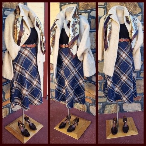 Classically tailored, featuring 2 front pockets and she is fully lined. Freshly laundered and in excellent condition. So cosy to wear, with skirts or pants. In the gallery I took photos for Instagram showing how cute she can look with the wool tartan skirt and silk scarf, these items aren’t included.