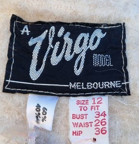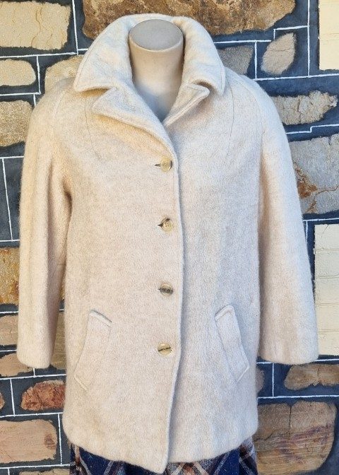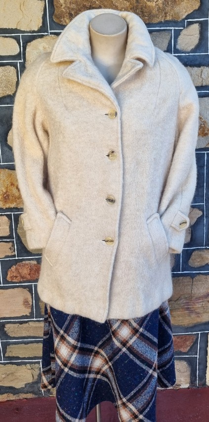 Vintage Coat, 3/4 length,60% wool, 40%mohair, Cream, by ‘Virgo of Melbourne’ size 12