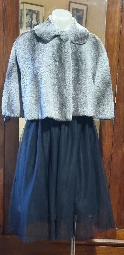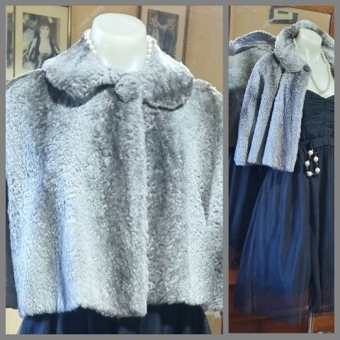 Vintage Faux Fur Caplet, Grey, size XS-S