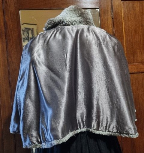 This caplet has a very Victorian era Vibe! Wear it buttoned up or simply draped on your shoulders, as shown in the examples in the gallery.