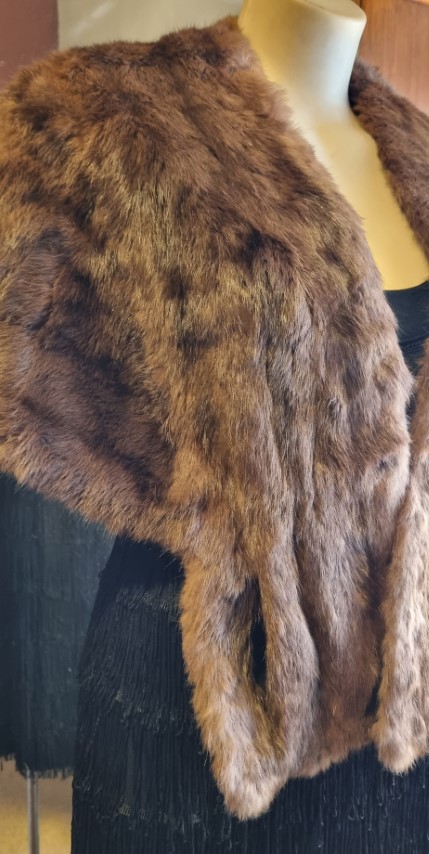 Elegant and timeless, this luxurious fully lined fur wrap has 2 front pockets as well.