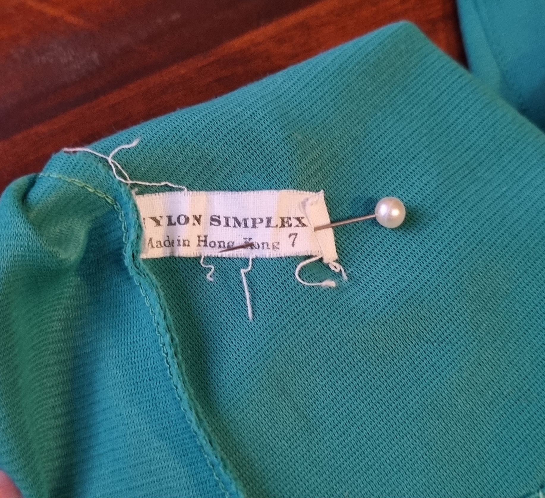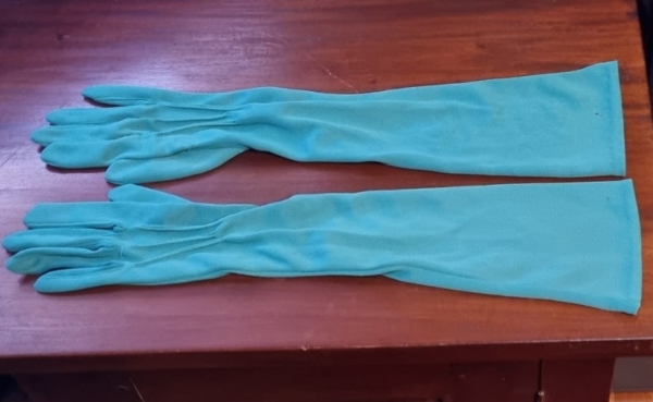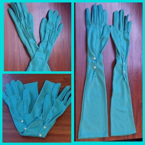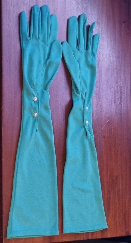 Vintage Glove, elbow length, Green, nylon, by ‘Simplex’, size 7
