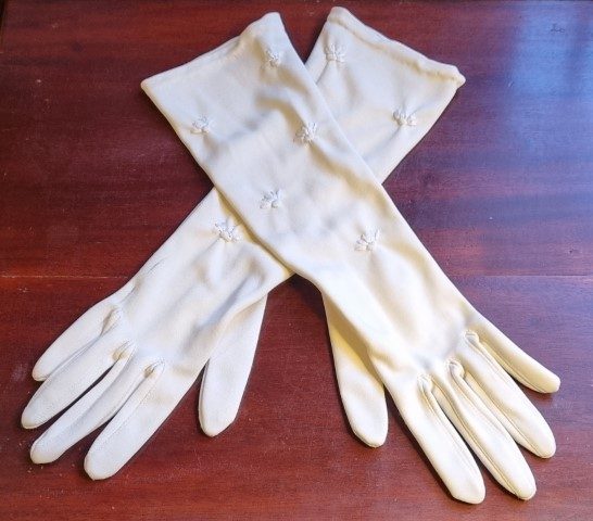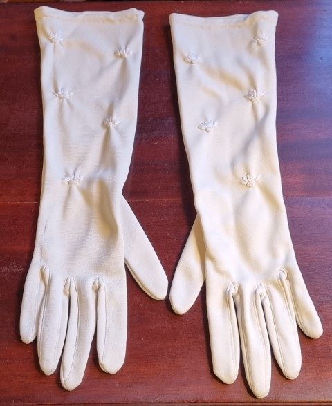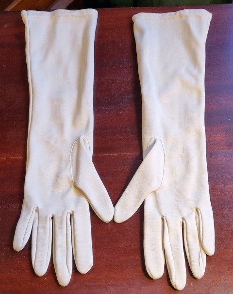 Vintage Gloves, 3/4 length, Beige, Nylon, size 6.5