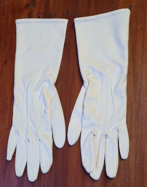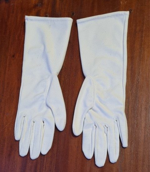 Vintage Gloves, Sage, Nylon, 3/4 length, ‘Satalon’, size 7.
