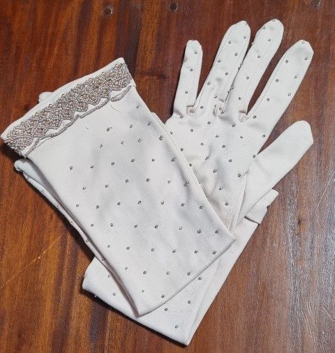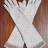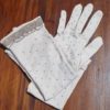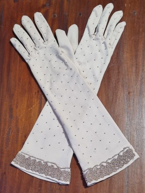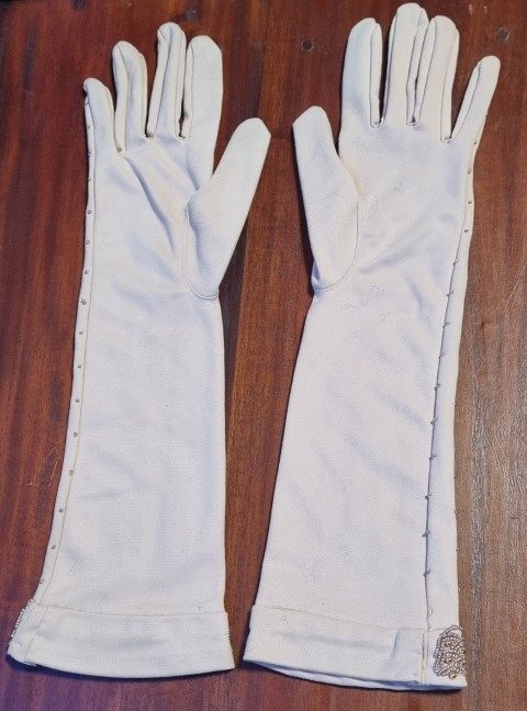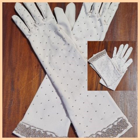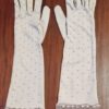 Vintage Gloves, Taupe with beaded details, 3/4 length, nylon, size 7