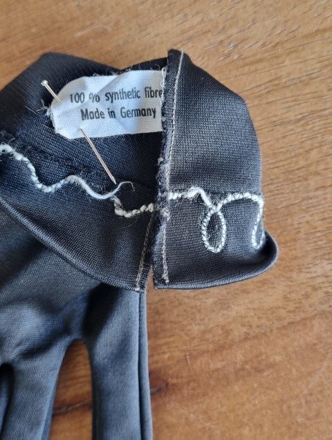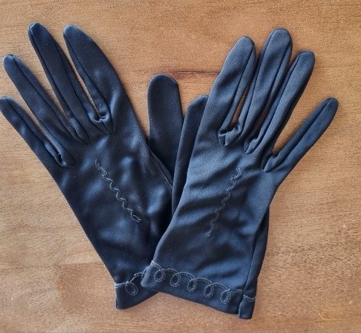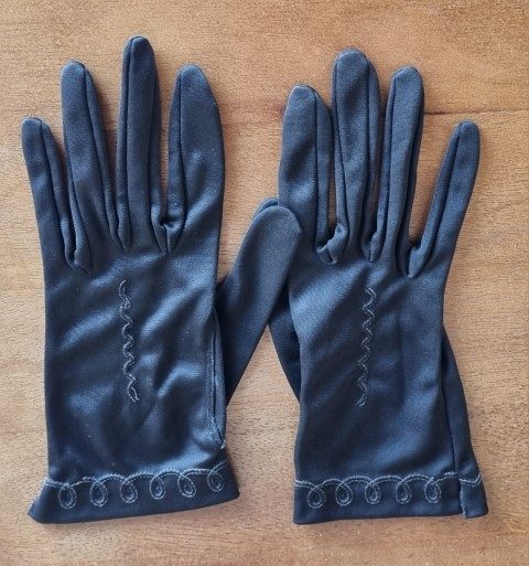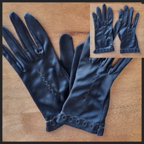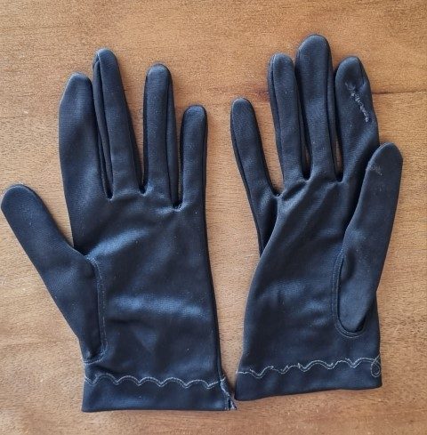 Vintage Gloves, wrist length, black, nylon, Made in Germany, size S