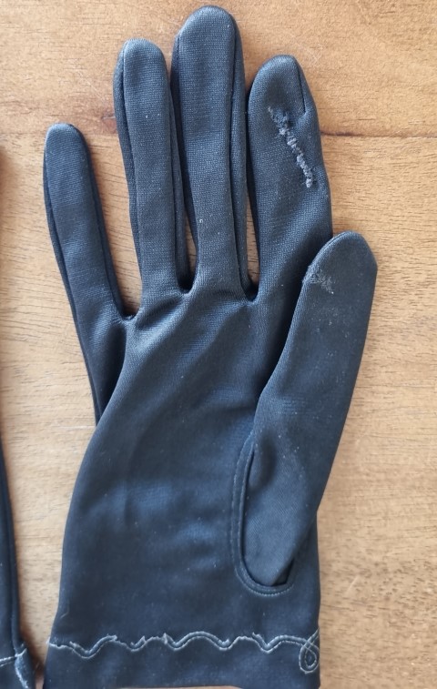 Freshly laundered, good condition except that 2 holes have been mended in the right glove, so for this reason, they have been reduced.