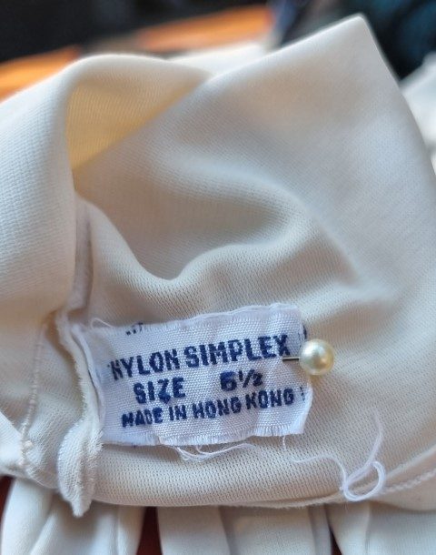 Vintage Gloves, Wrist length, cream, by ‘Simplex’, nylon, size 6.5