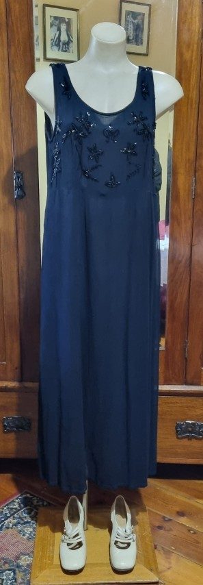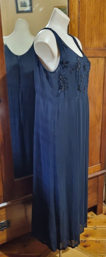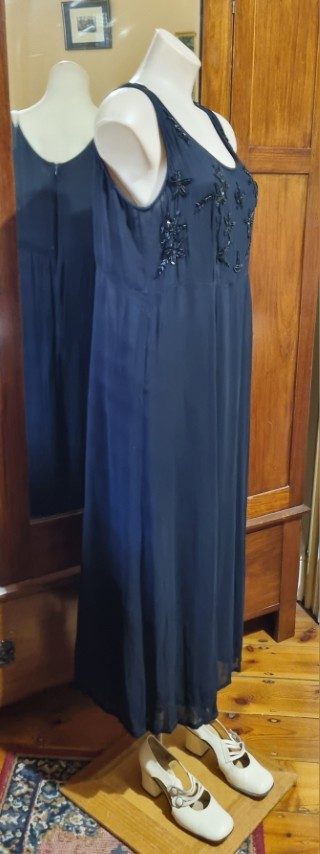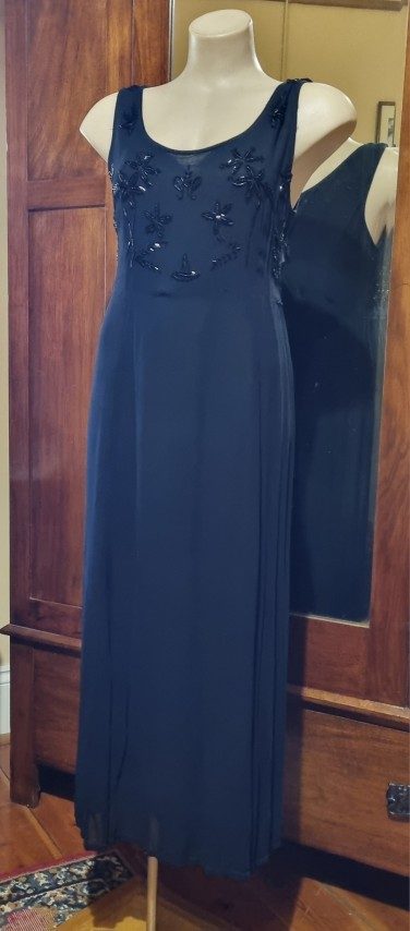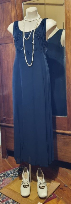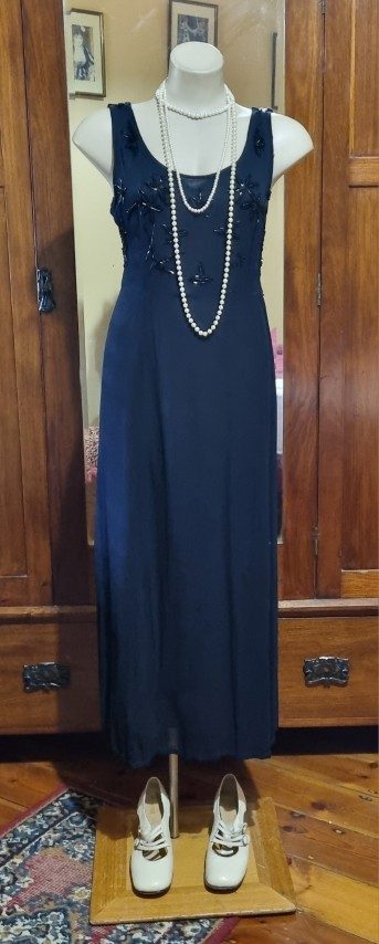 The little black dress is as popular as ever. In this instance, for my Instagram page, I styled this pretty one as a 1920’s look, as can be seen in the gallery photos. For this a let her hang loosely. The beaded coat, pearls, hat, bag and shoes are not included.