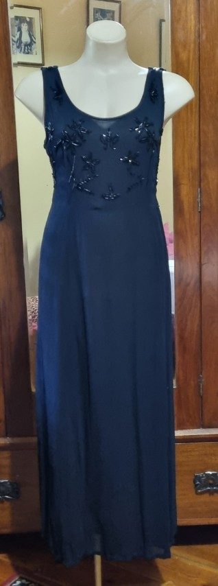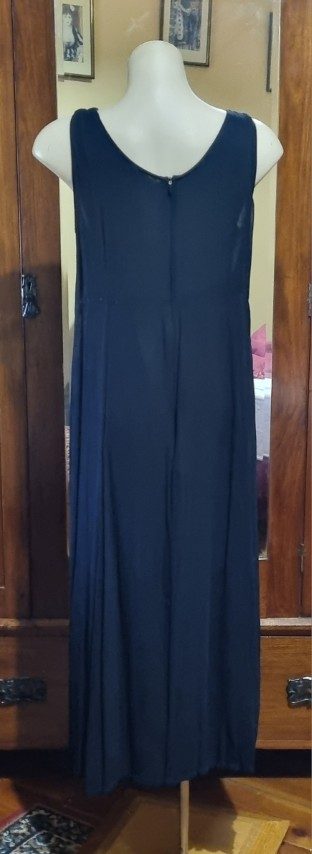 In a flat lay, the bust is 104cm, under bust is 96cm, as is the waist, hips are 104cm and the length is 127cm. All of these measurements are of the cotton lining, because the chiffon layer flows gently over the top
