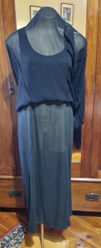 Vintage Gown, Princess Line, Mid-length, Black, chiffon/cotton, size M