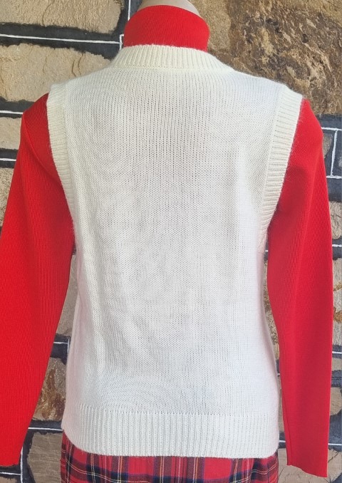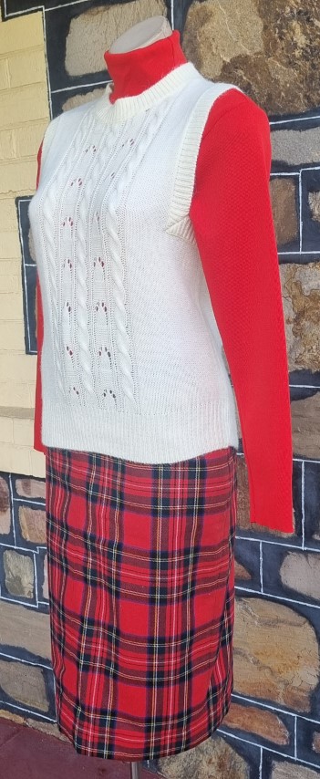 The red skivvy and tartan skirt are not included, I took these photos to show how lovely the vest can look.