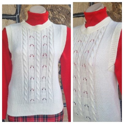 Vintage Knitted Vest, Cream, Angora, size M.