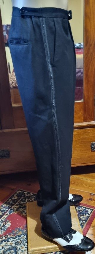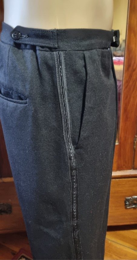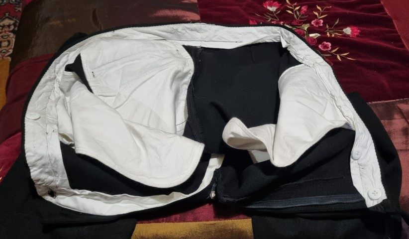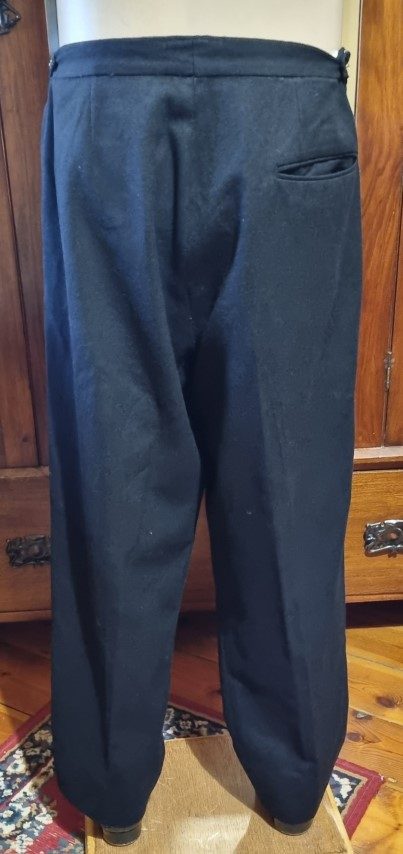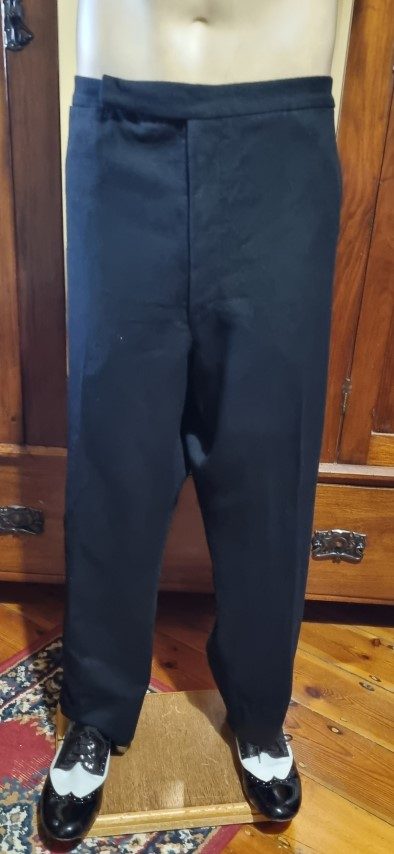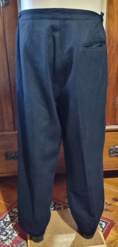 The trousers have been freshly laundered and have an adjustable waist with some buttons. So, it can be as large as 40″ to 38″, or the button could be moved if you need them to be slightly smaller too.