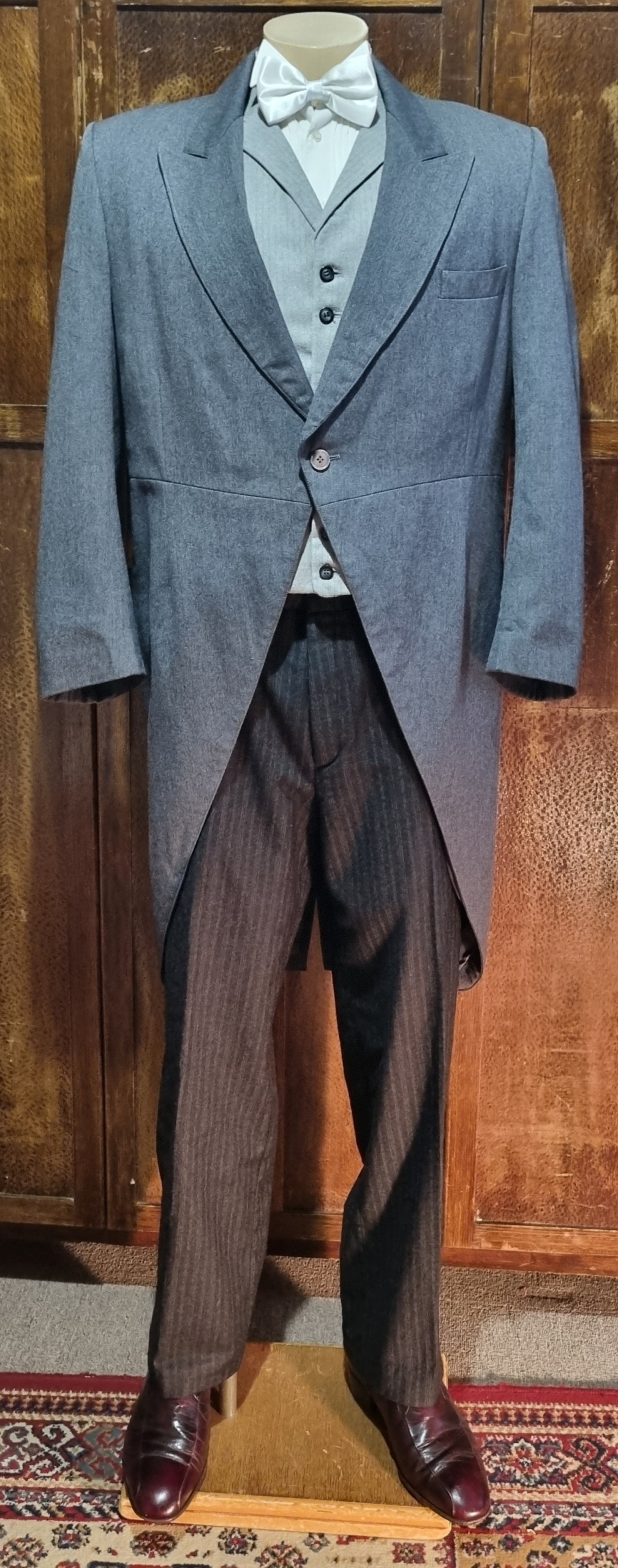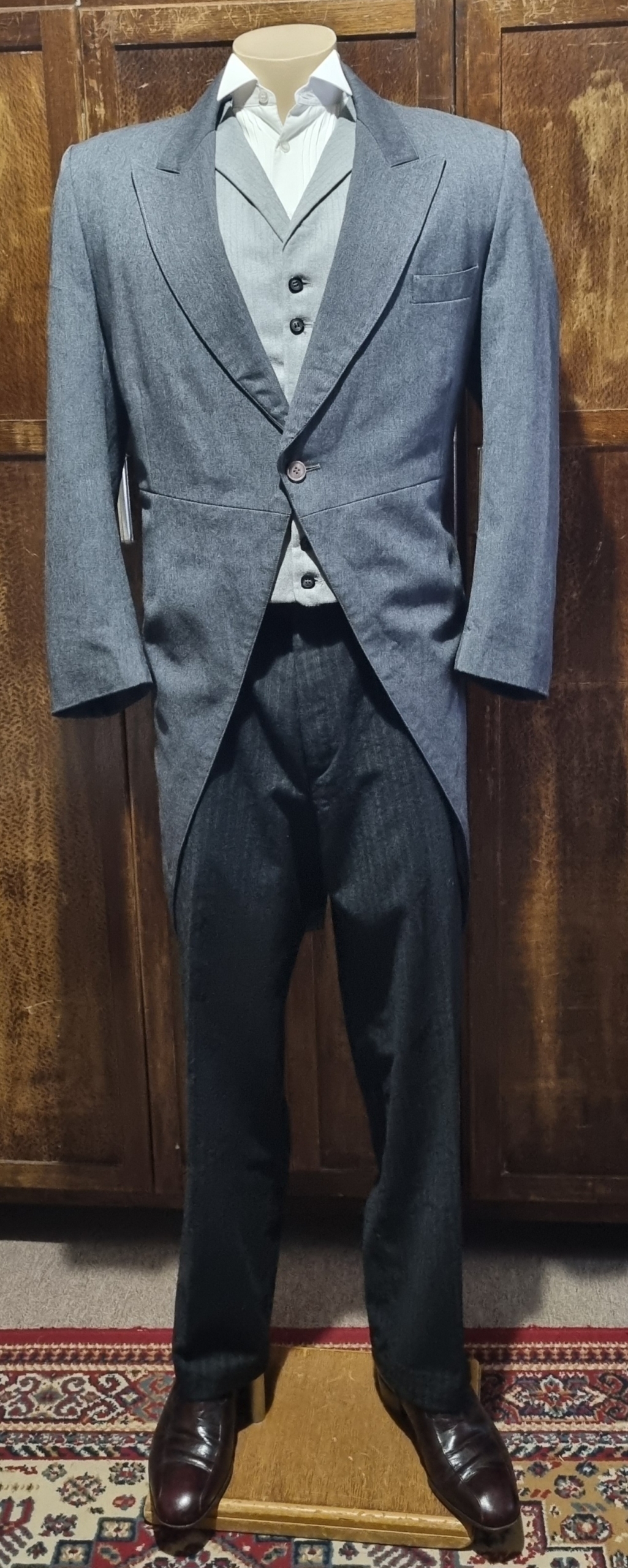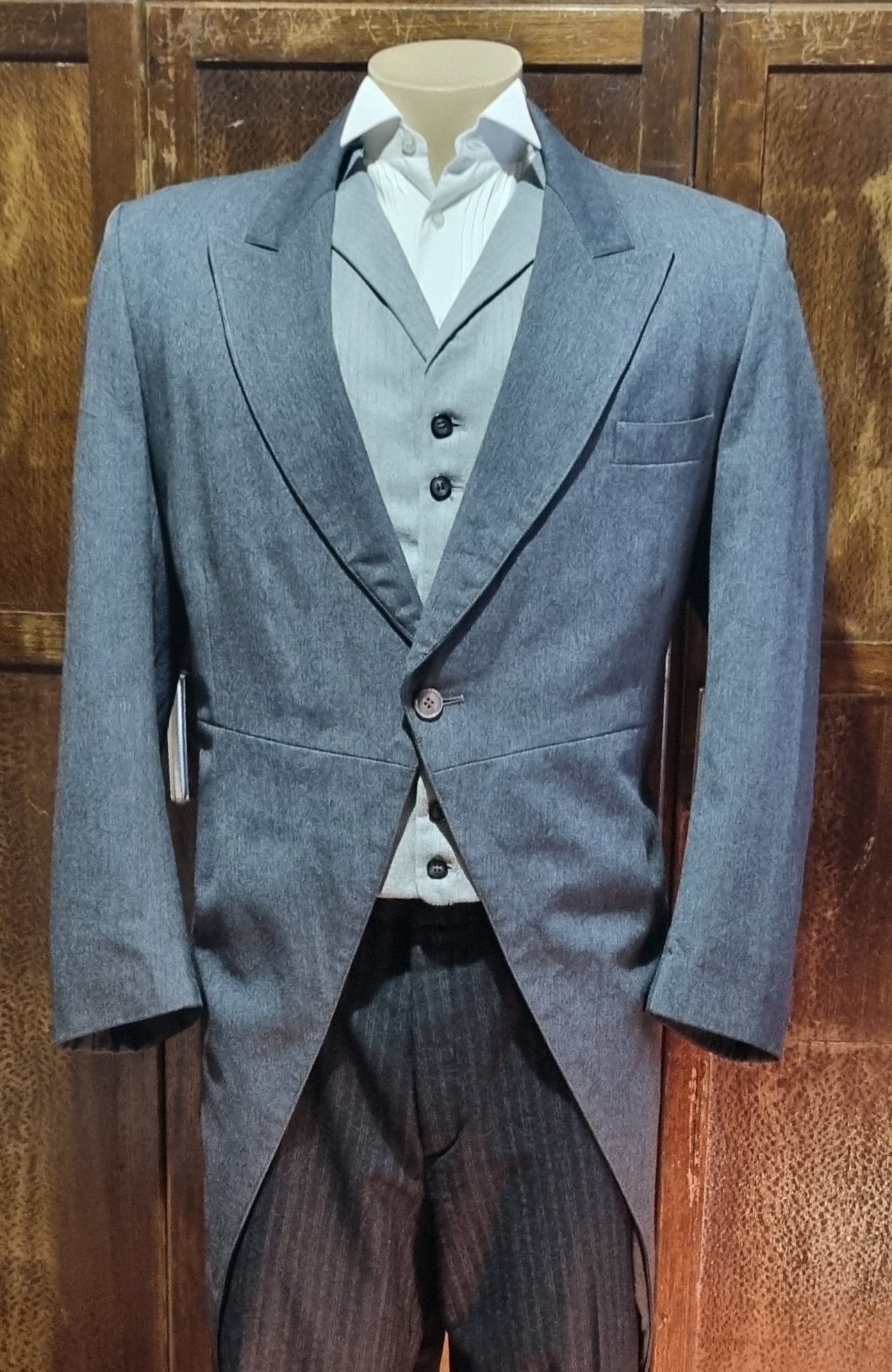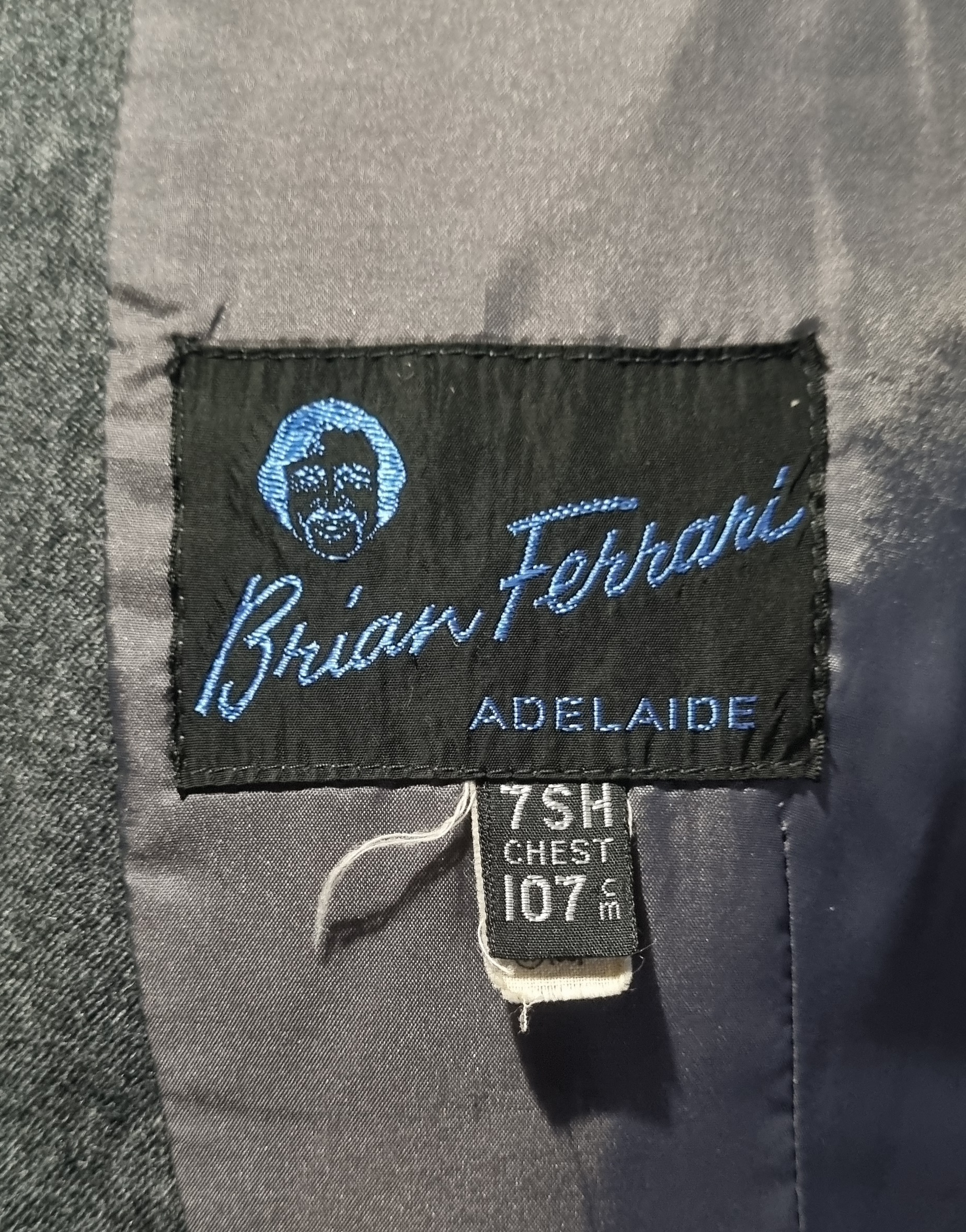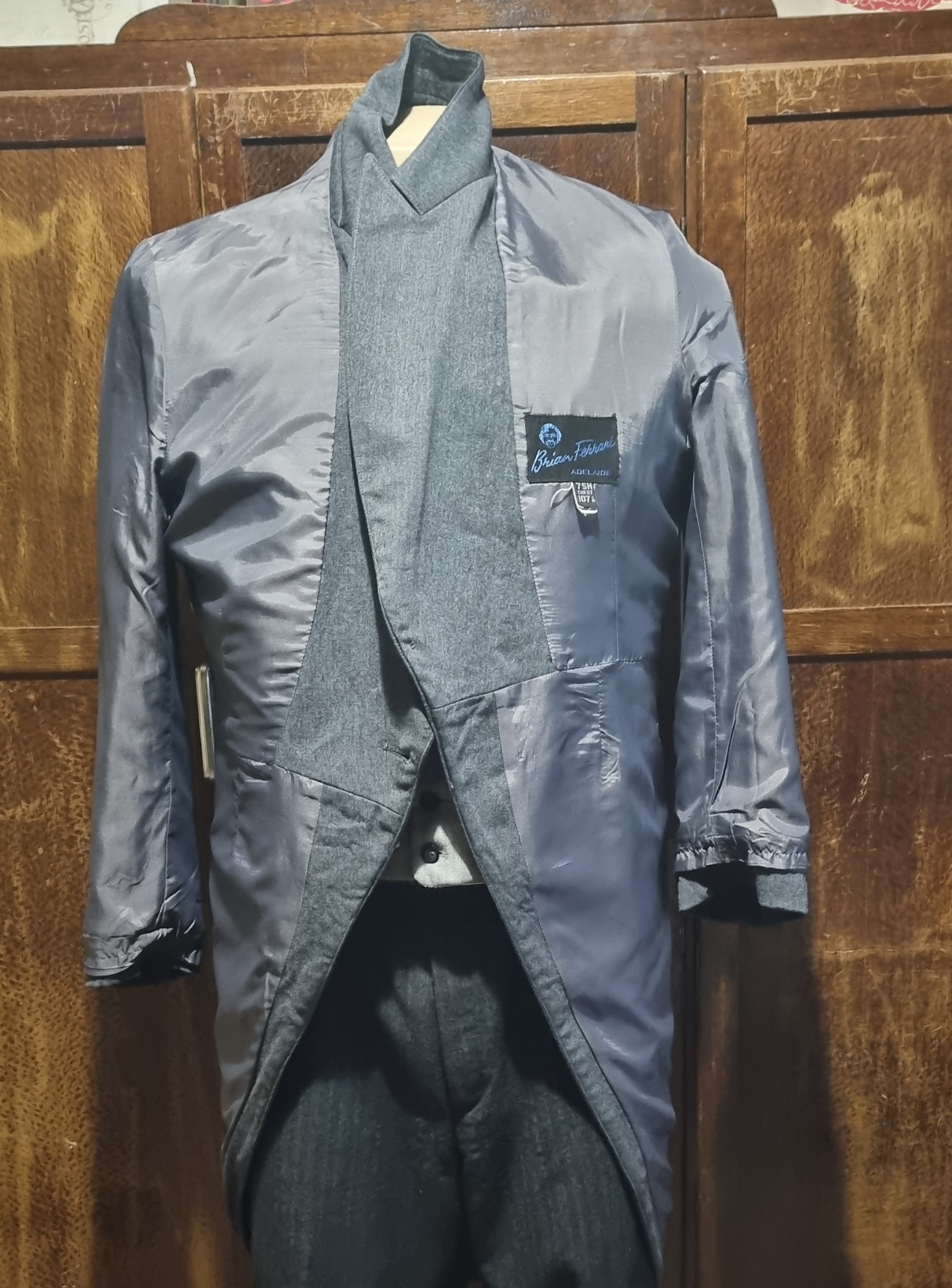 Vintage Morning Coat, Grey, Wool/polyester, by ‘Brian Ferrari, Adelaide’, size (7 short)
