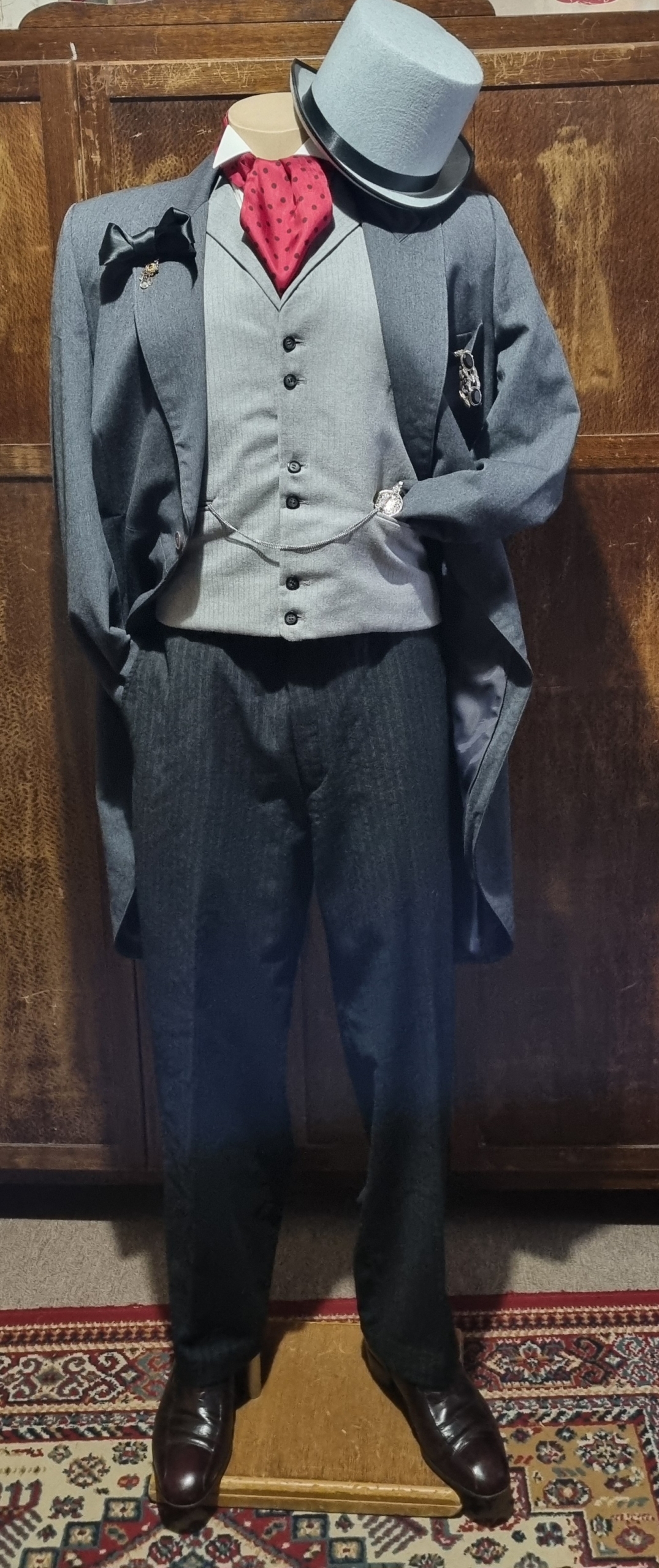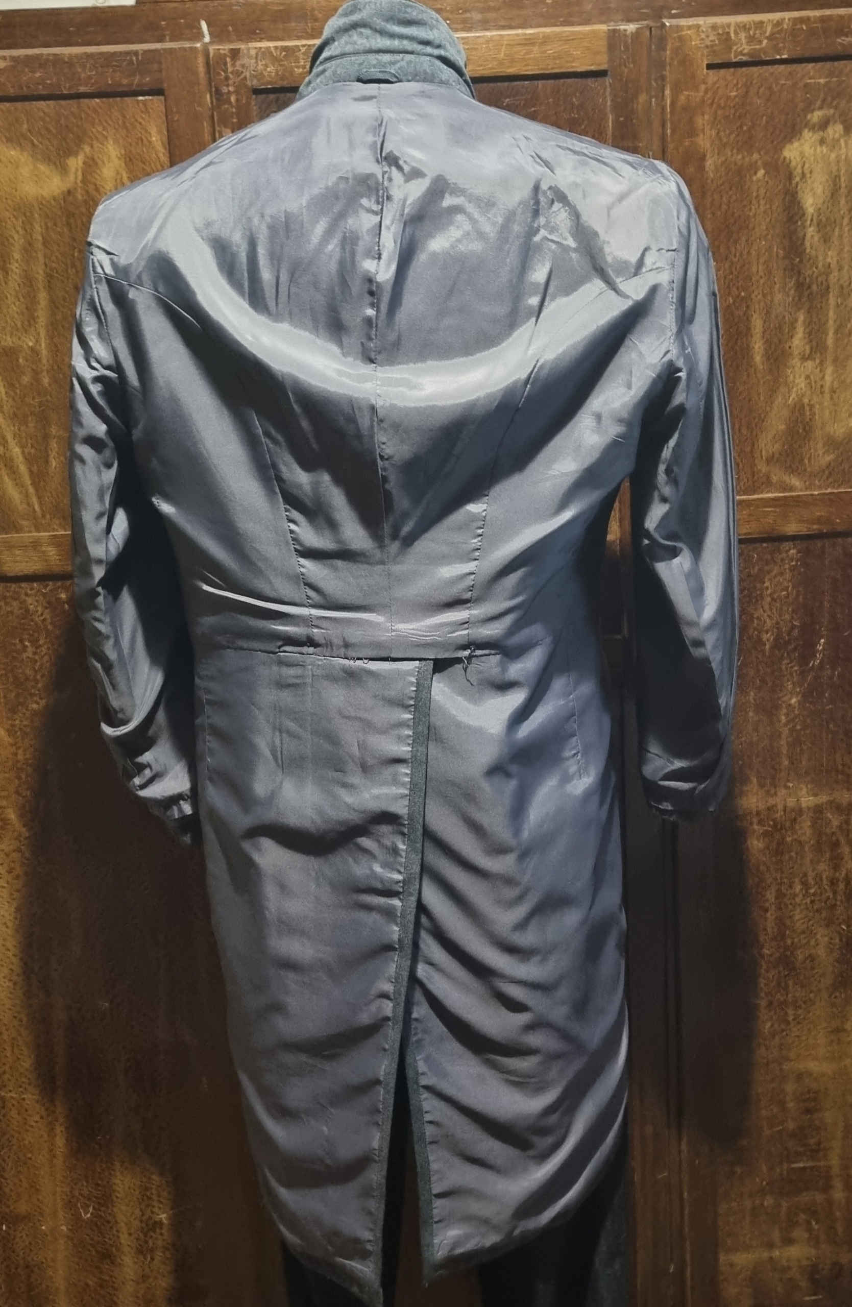 This classy Coat has the air of the Victorian era, as I have demonstrated in a photo in the gallery. Adding a top hat, cravat, waistcoat and vintage wool pinstriped trousers, none of these items are included.