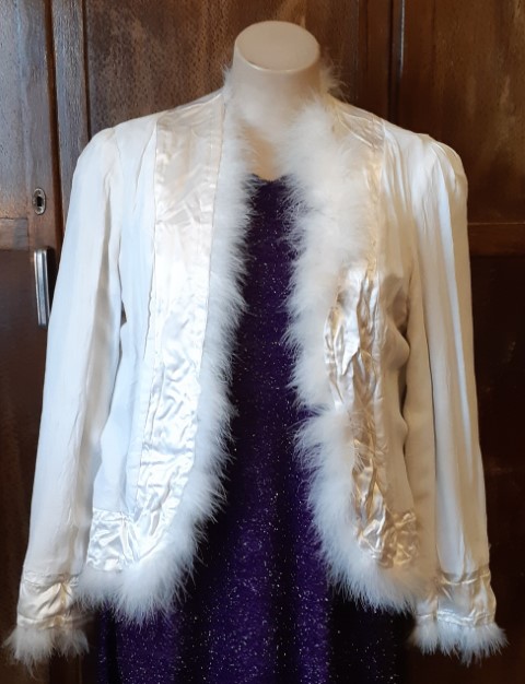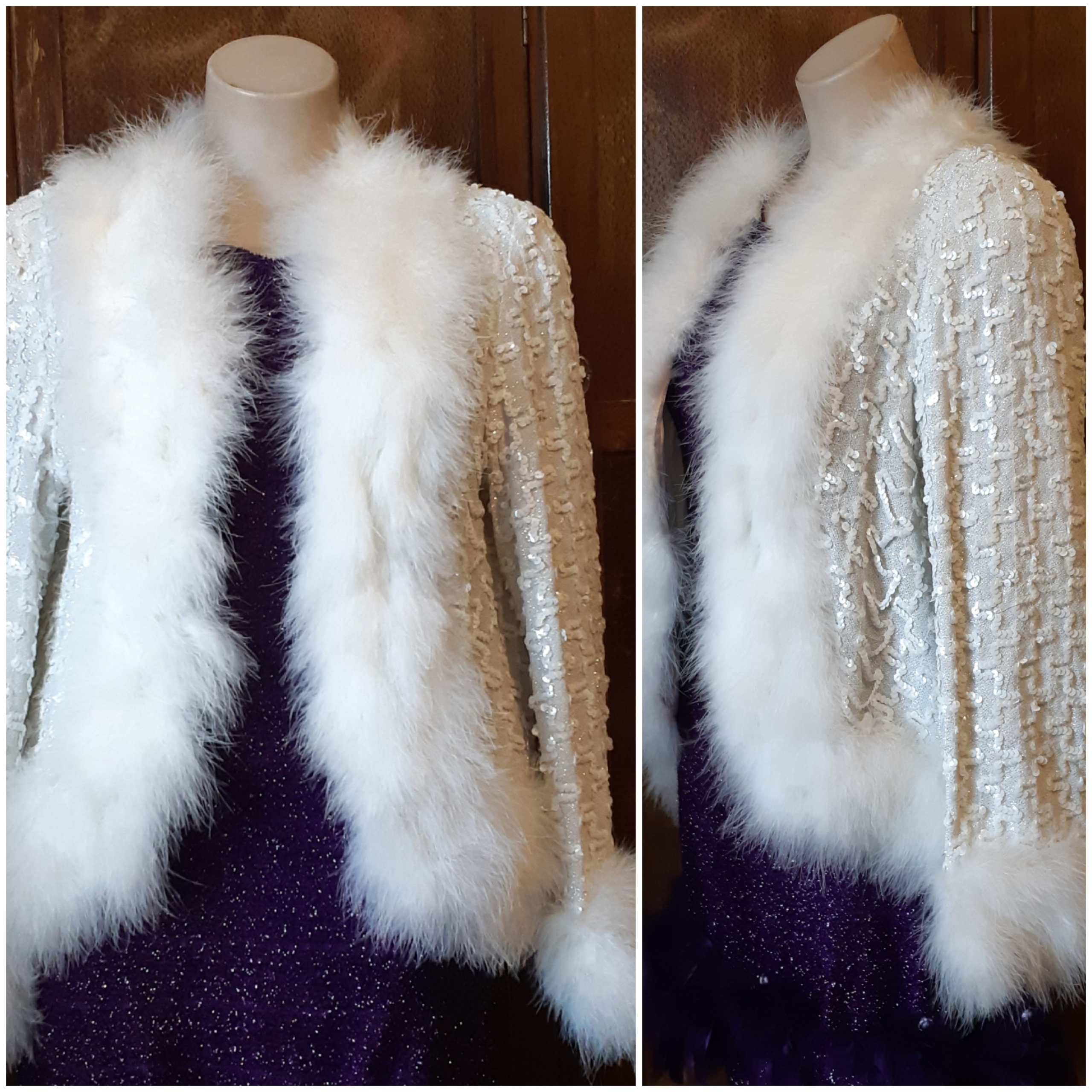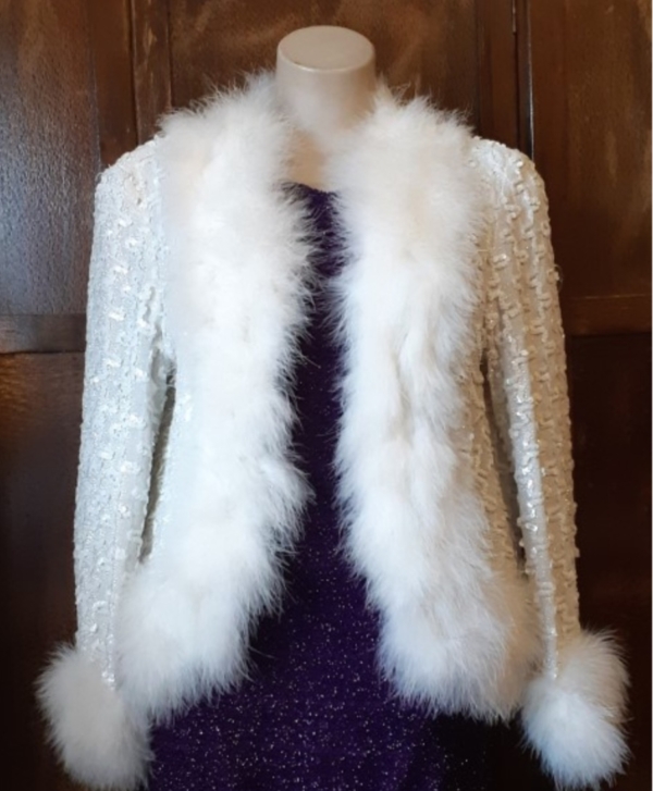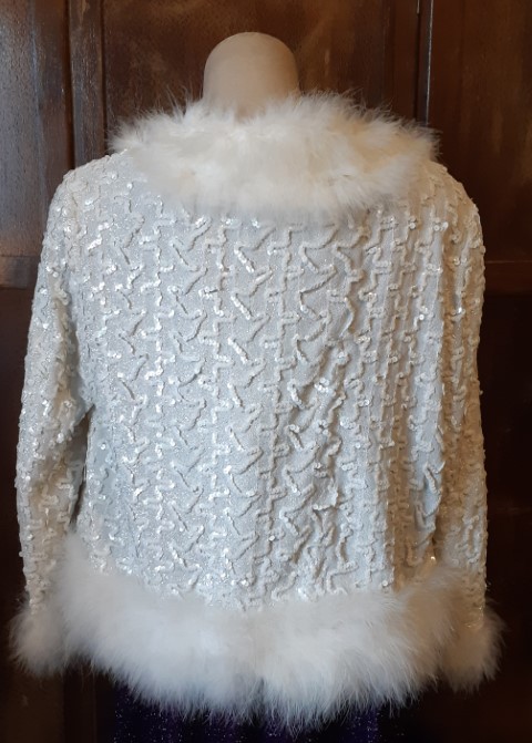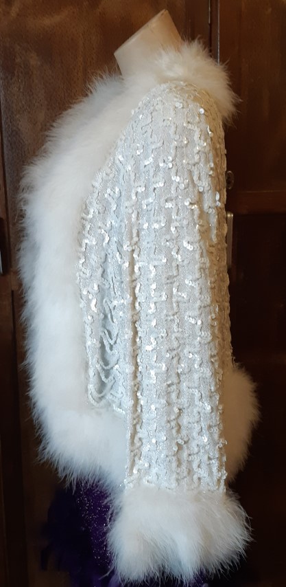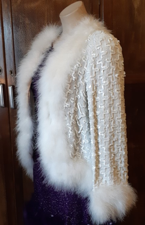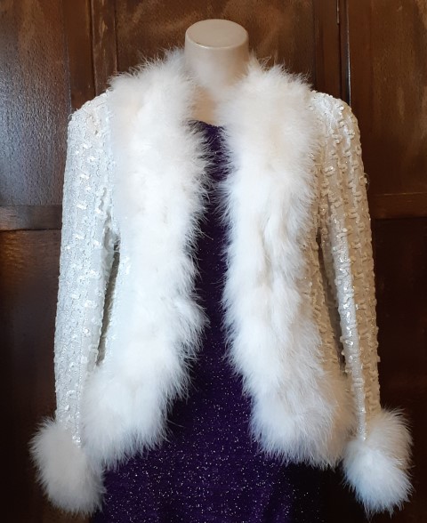 Vintage Sequined Evening Jacket, Cream, Faux Fur Trim, by ‘Odee Of California’.