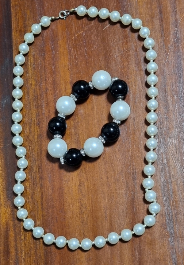 Vintage, Shell based, Pearl necklace and bracelet set.