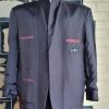 Flat lay the jacket is, chest 50″, waist is 48″, hips are 50″, length is 33′” and the shoulder span is 22″
