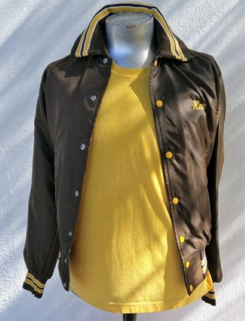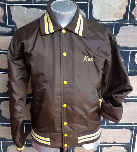 The chest measures 46″, right now the embroidered name is Kae….but if your handy you could easily unpick it and add your own name, boy or girl.