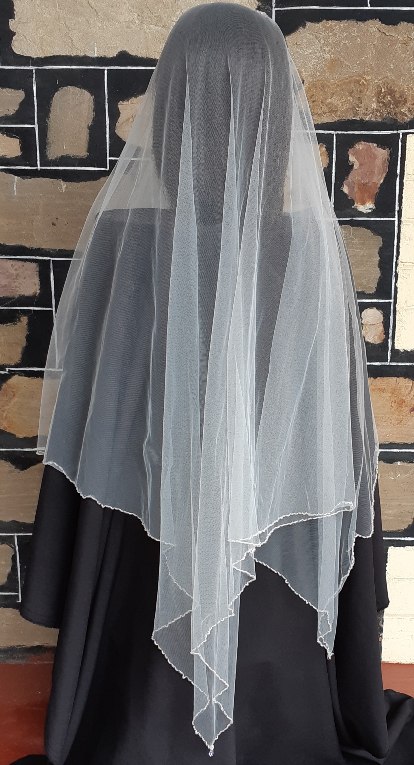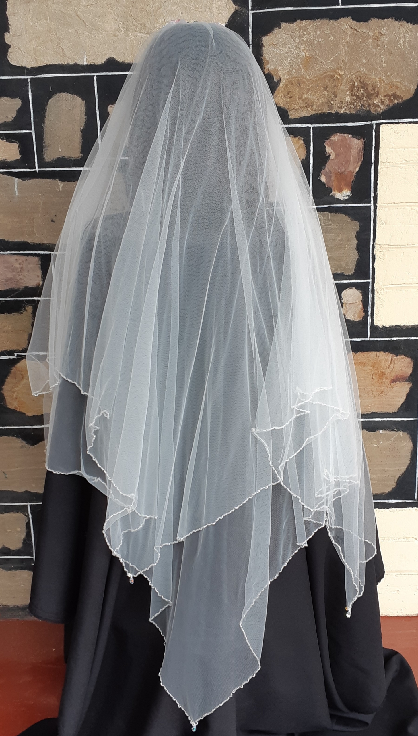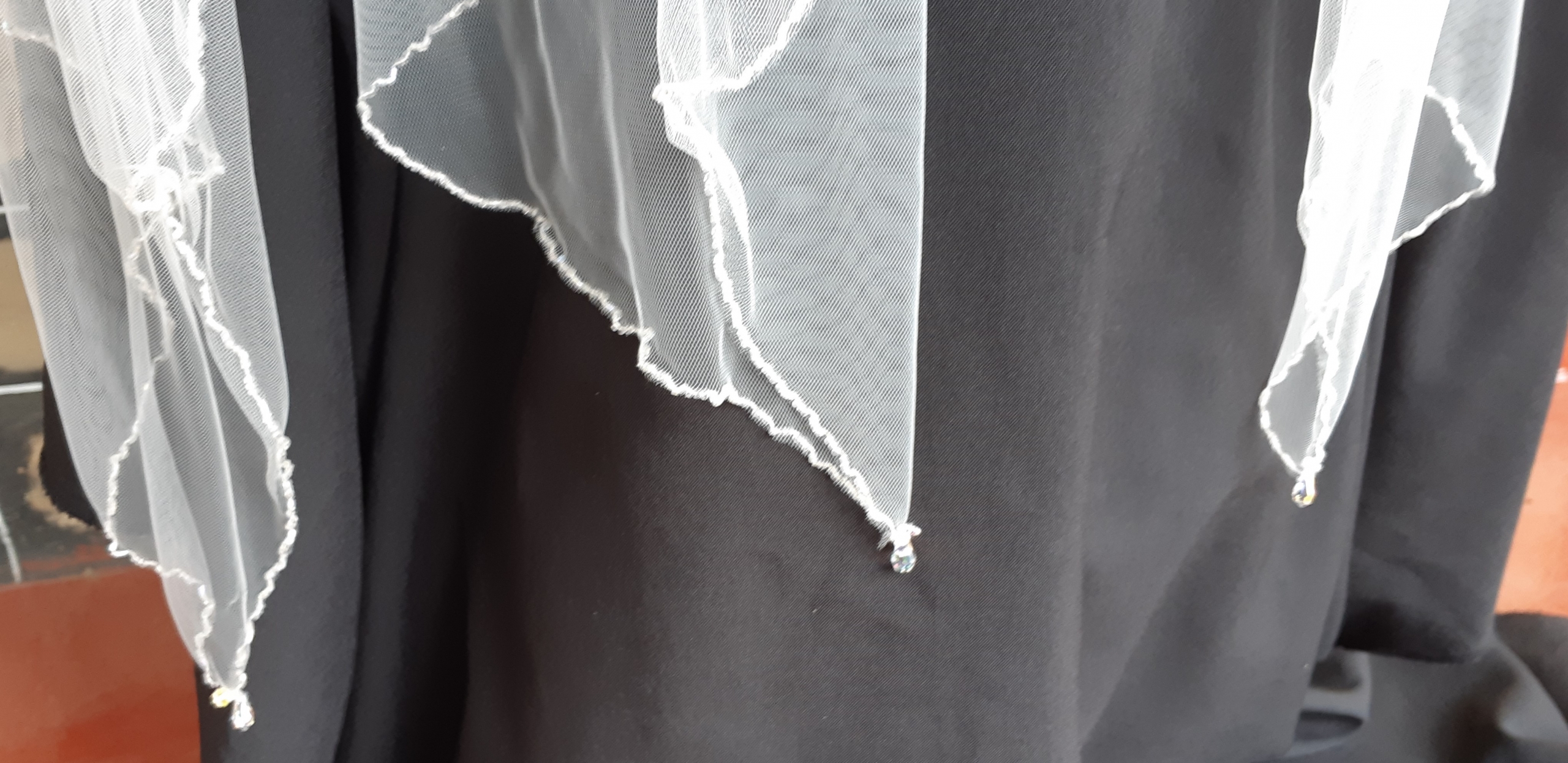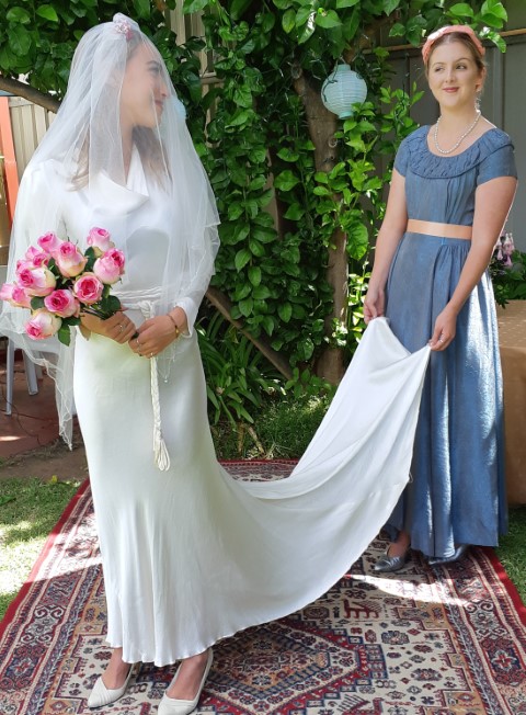 Works beautifully with our 1940’s satin wedding dress as shown in gallery.
