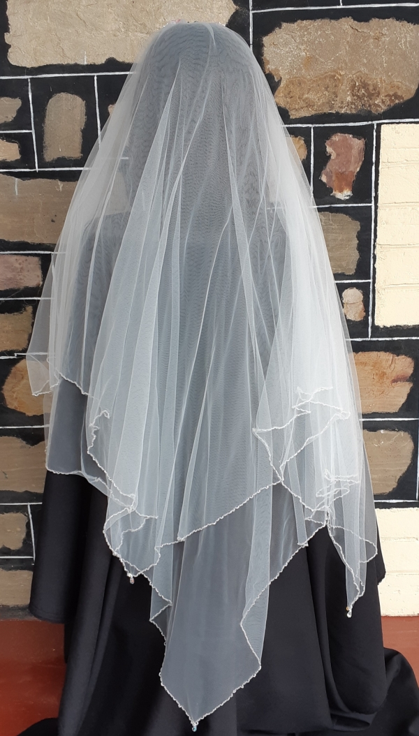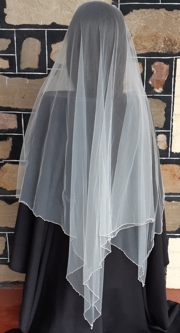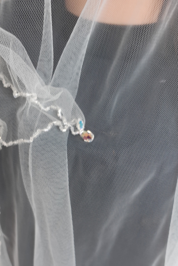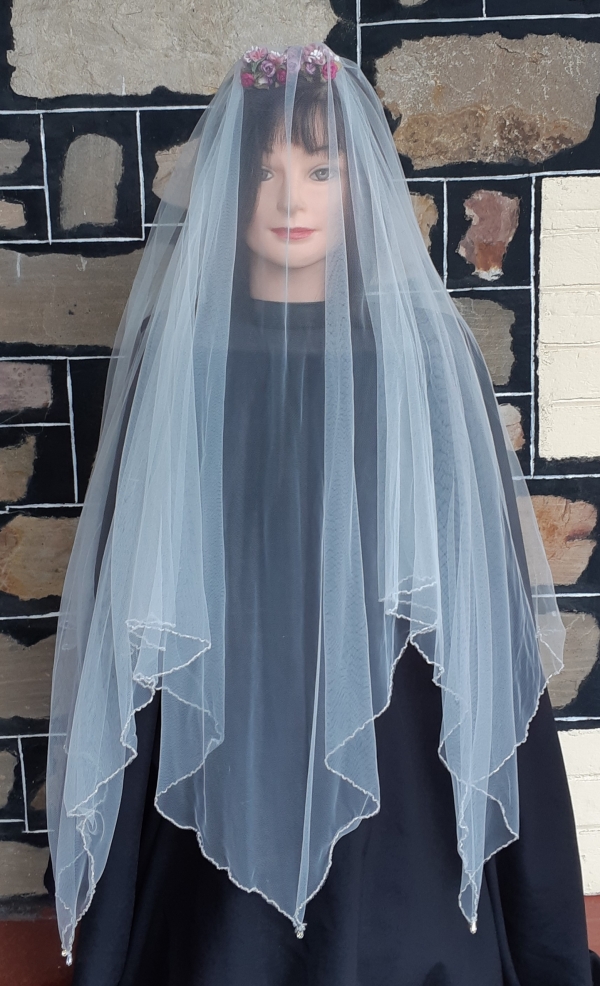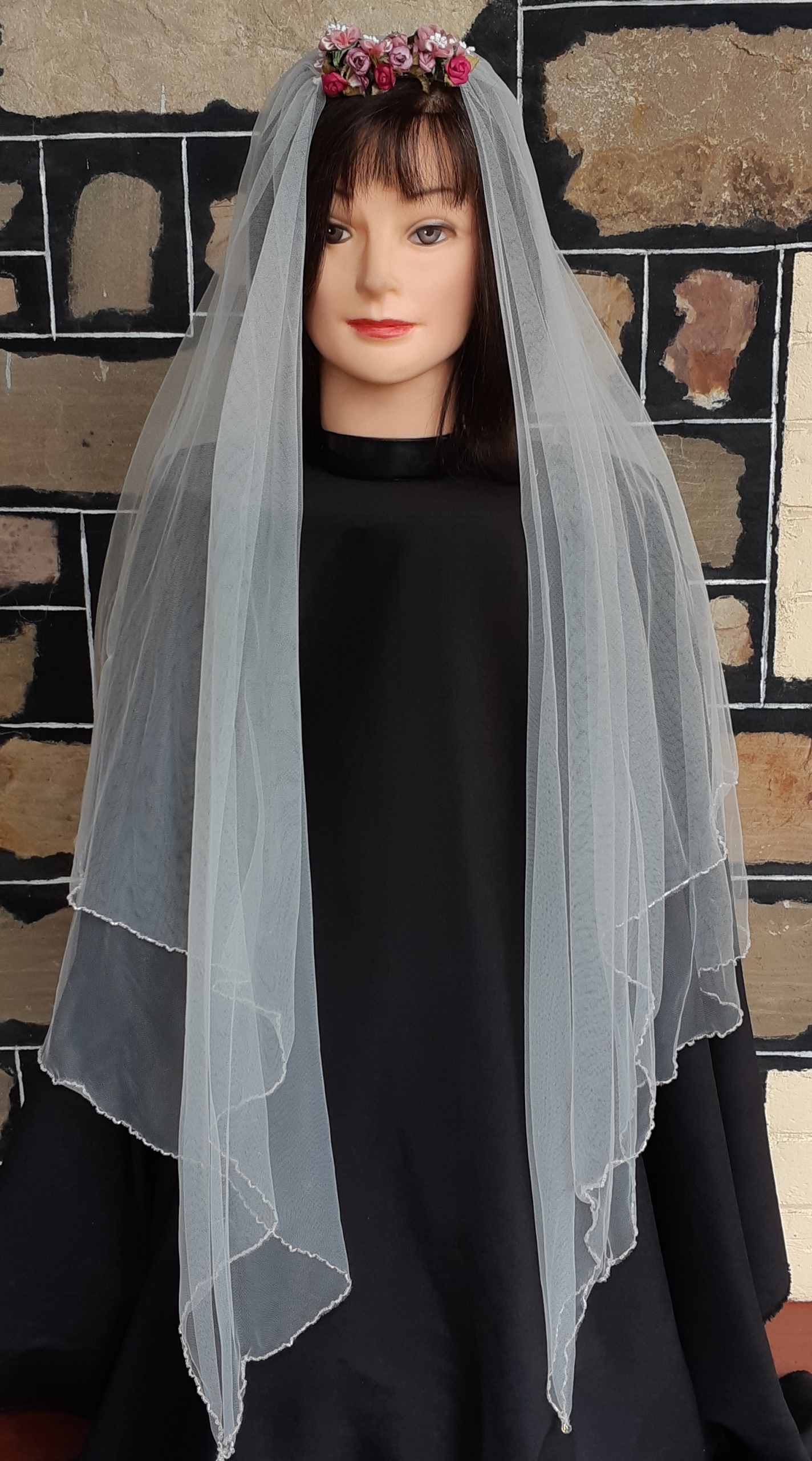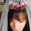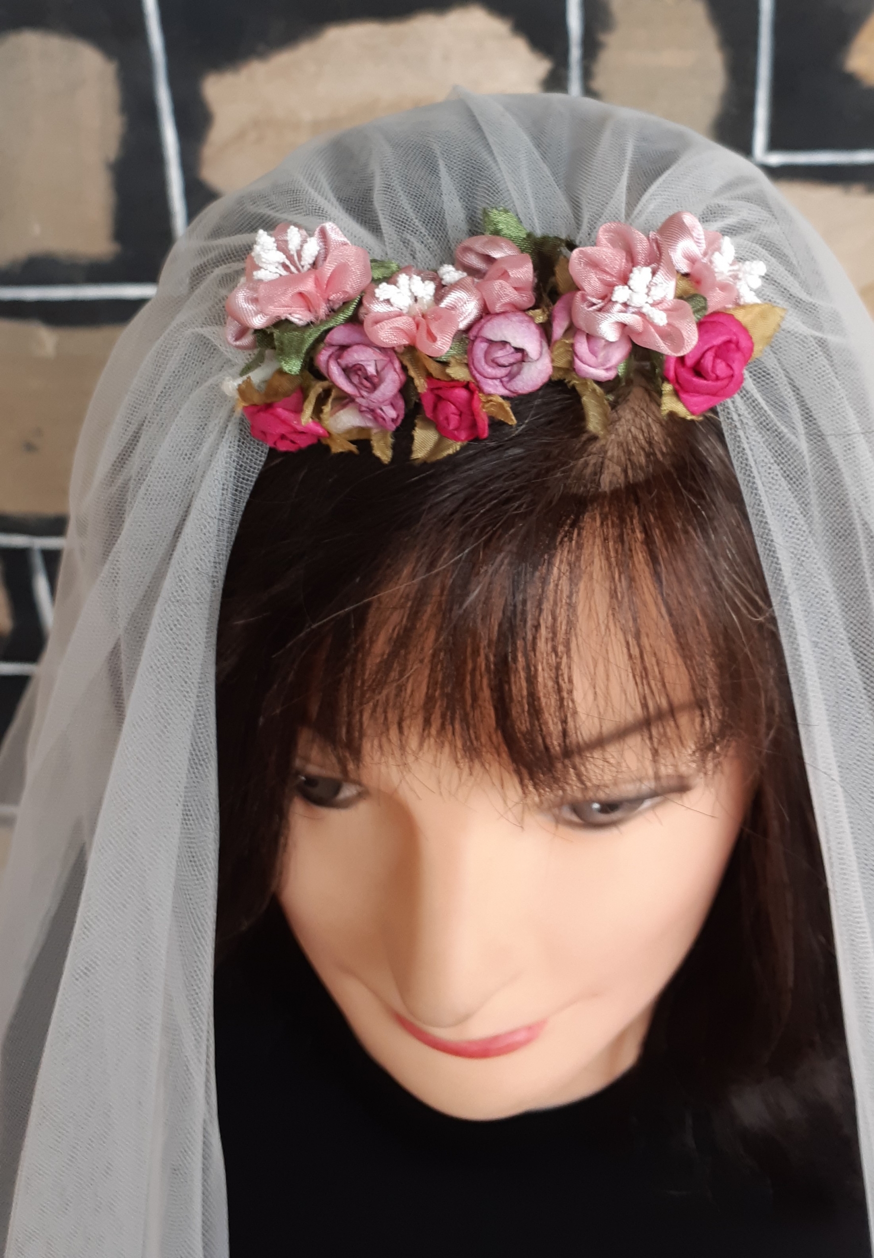 Vintage Wedding Veil, polyester netting & dried flowers on a comb, total length 109cm.